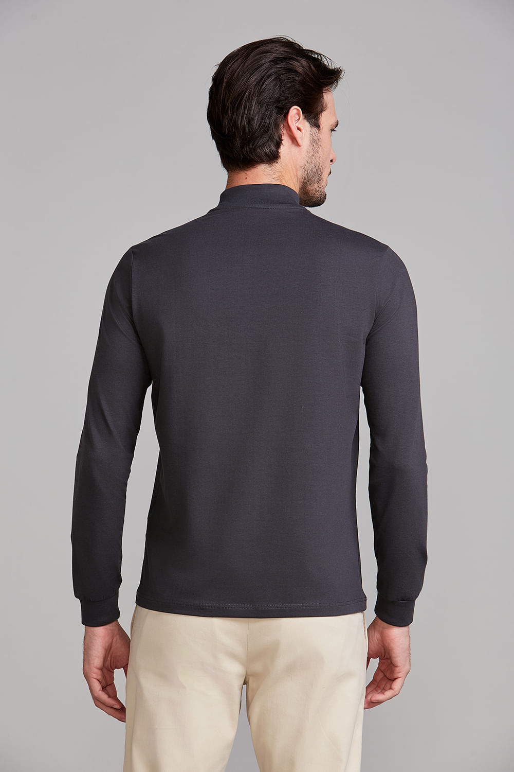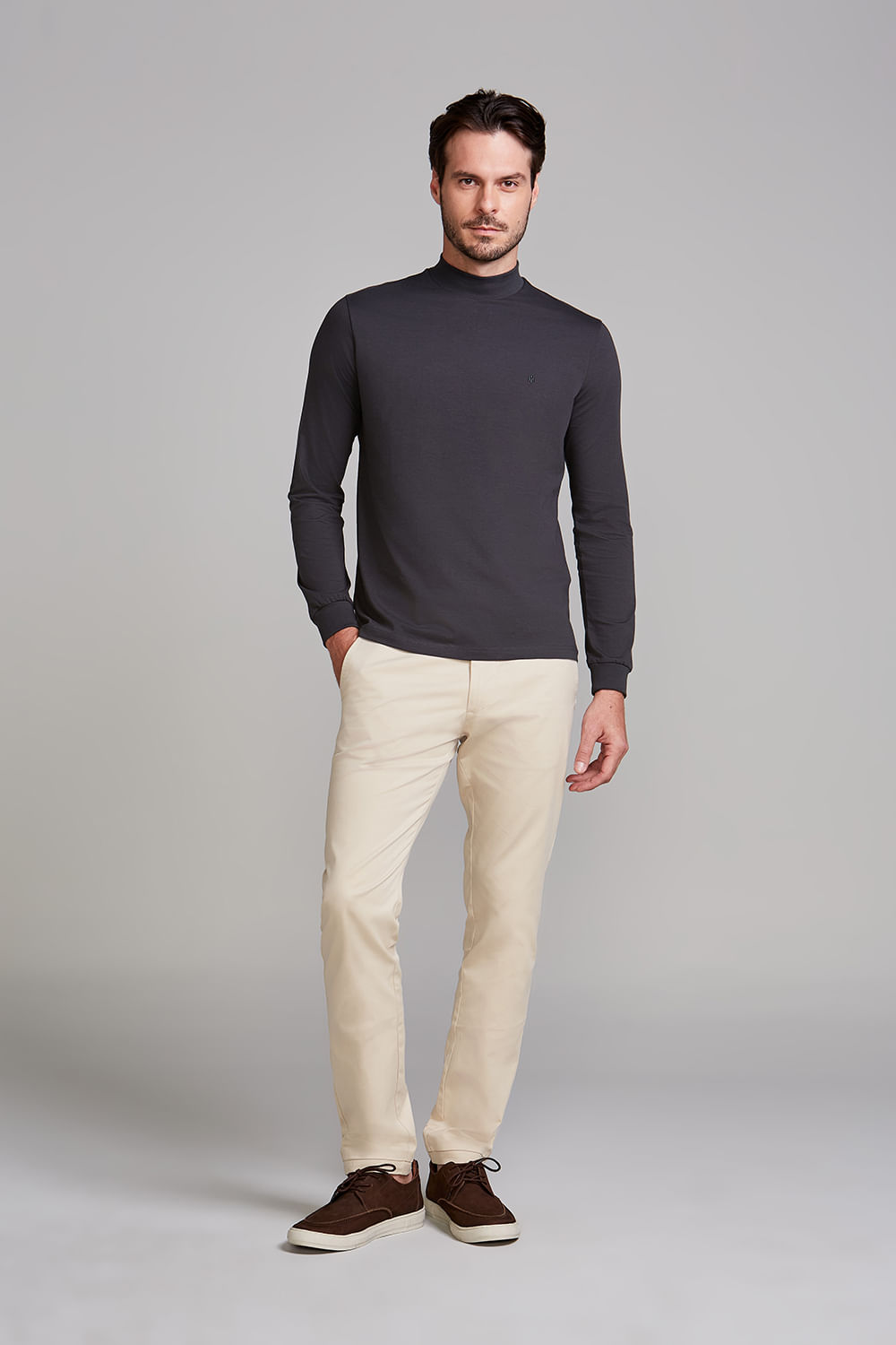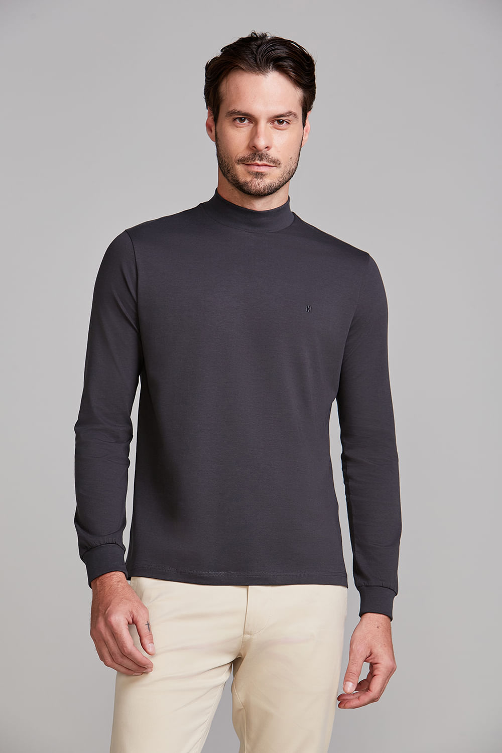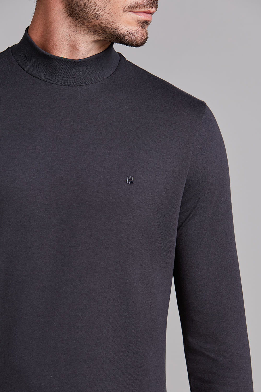 Camiseta Manga Longa Malha Slim Fit - Cinza Chumbo