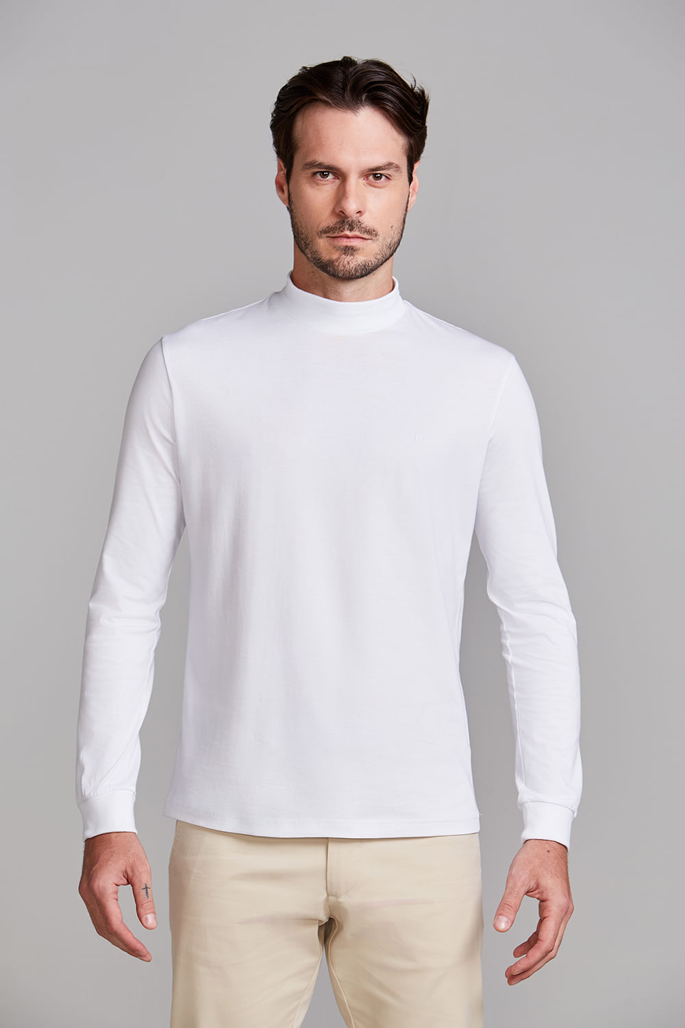 Camiseta Manga Longa Malha Slim Fit - Branco