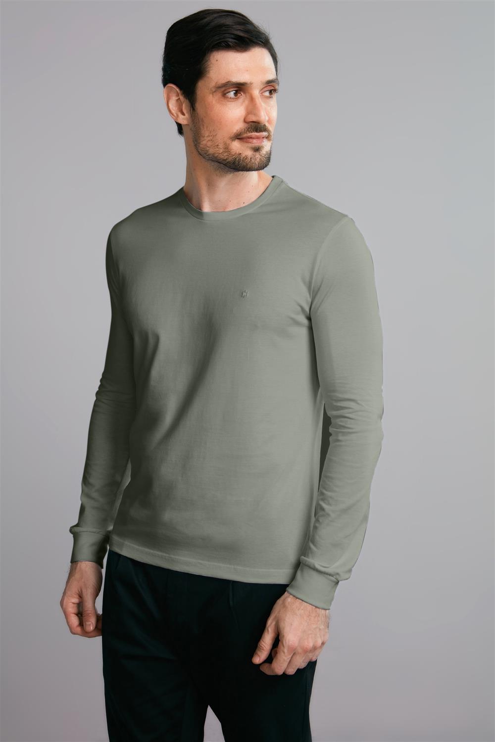 Camiseta Manga Longa Premium Malha Slim Fit - Verde Escuro