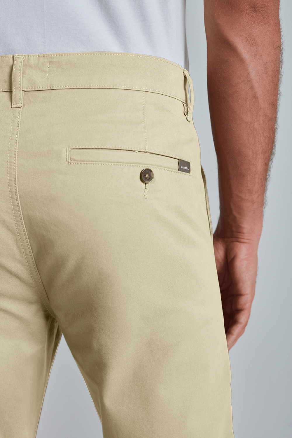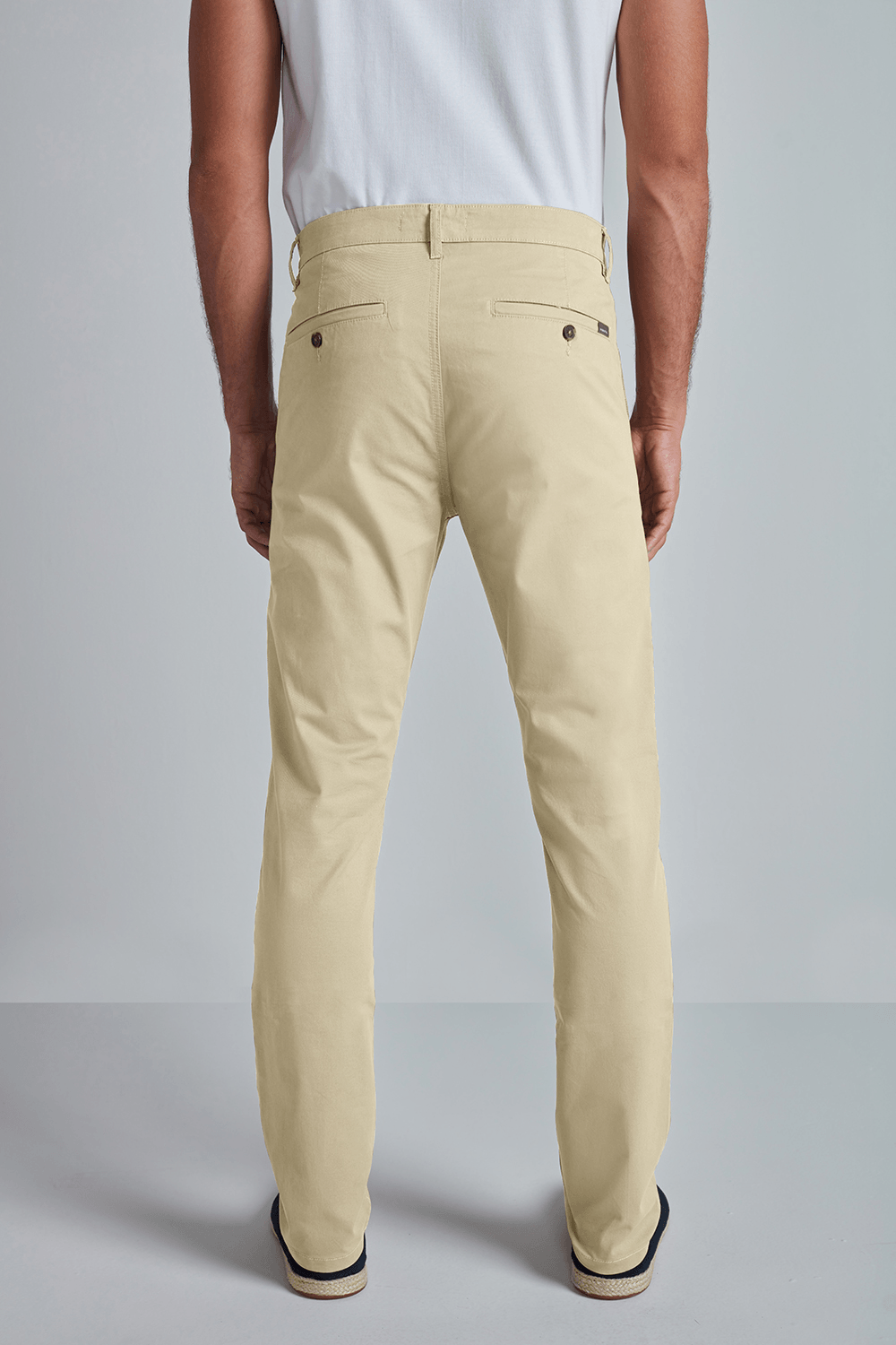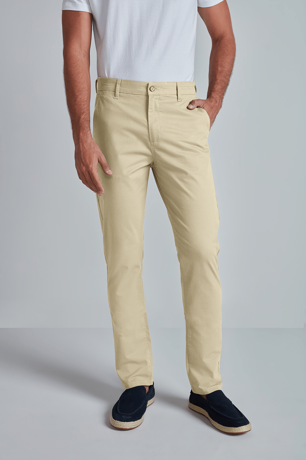 A Calça Chino Slim Fit tem composição 98% Algodão e 2% Elastano.