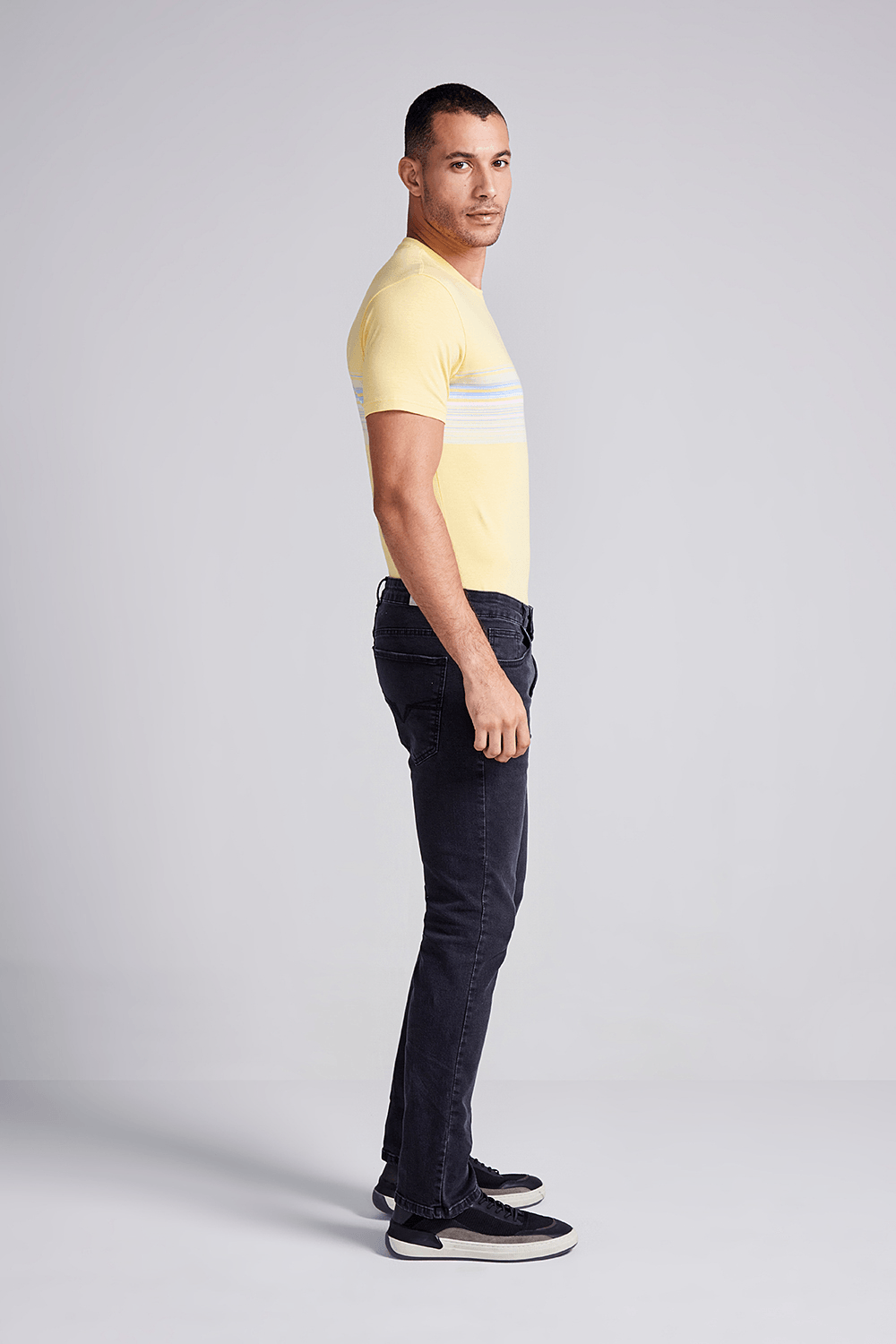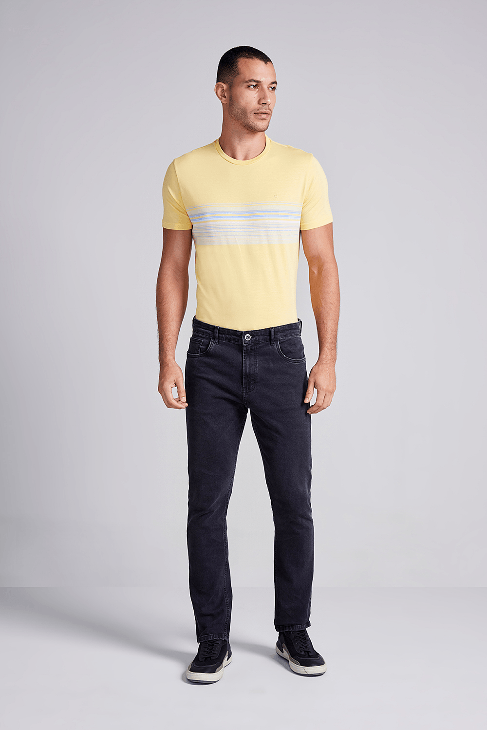 A Calça Jeans Slim Fit é confeccionada em 98% Algodão e 2% Elastano.