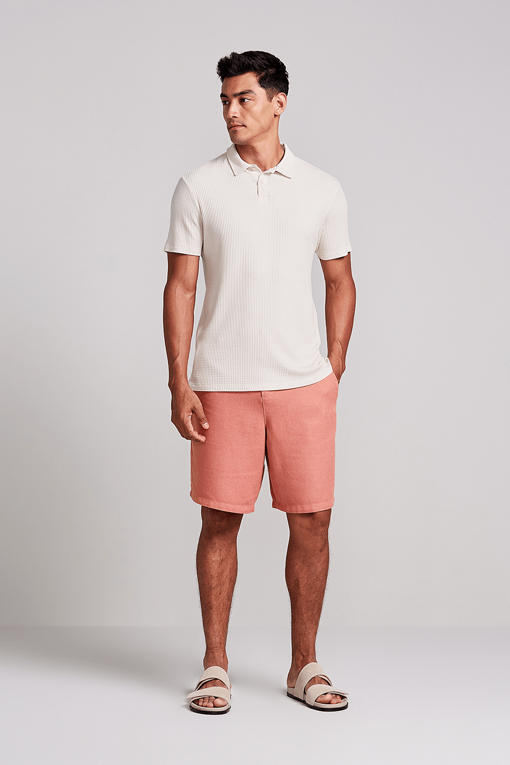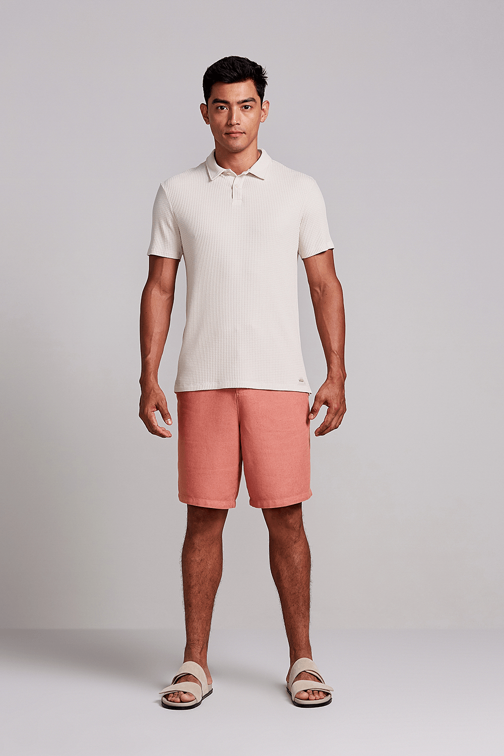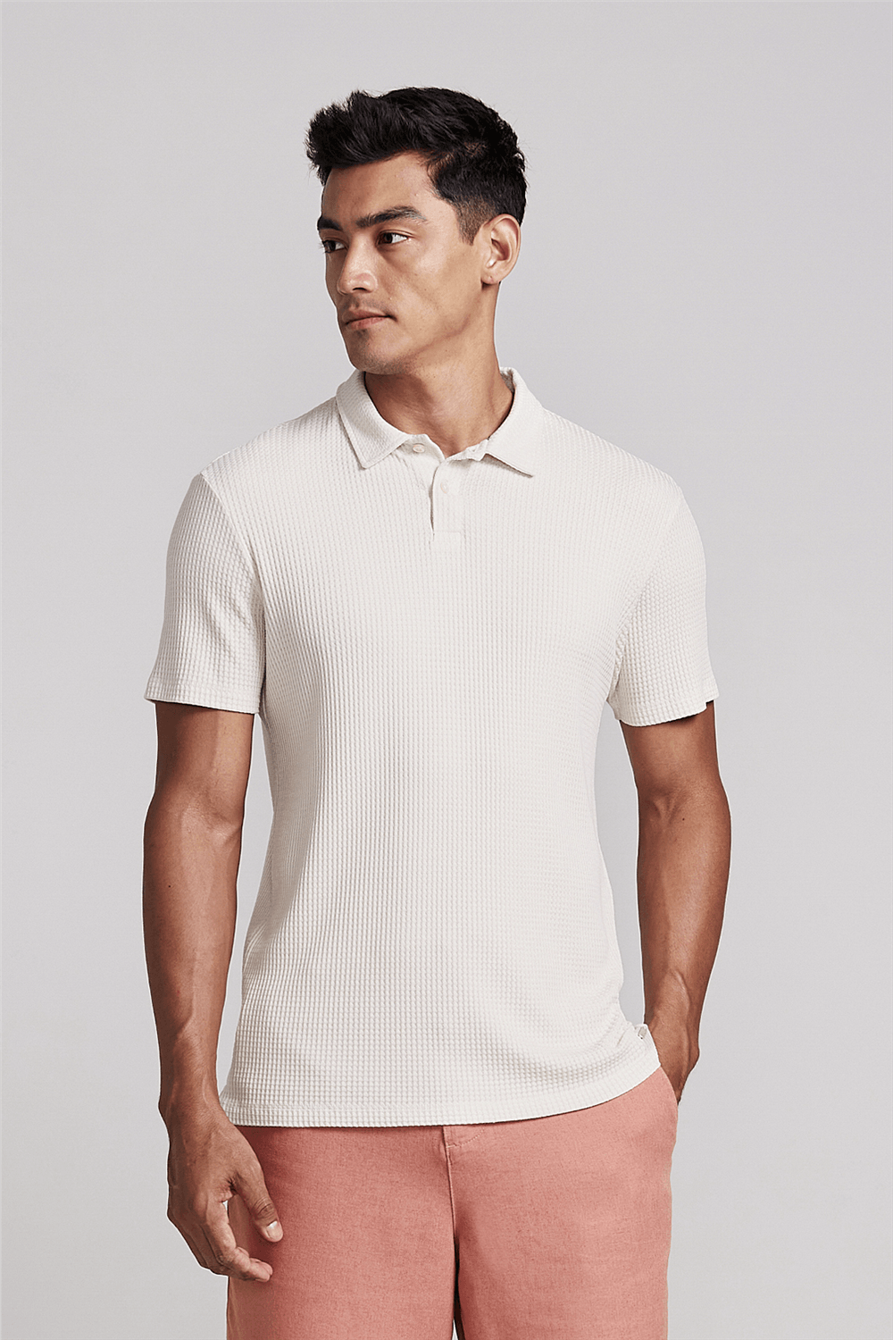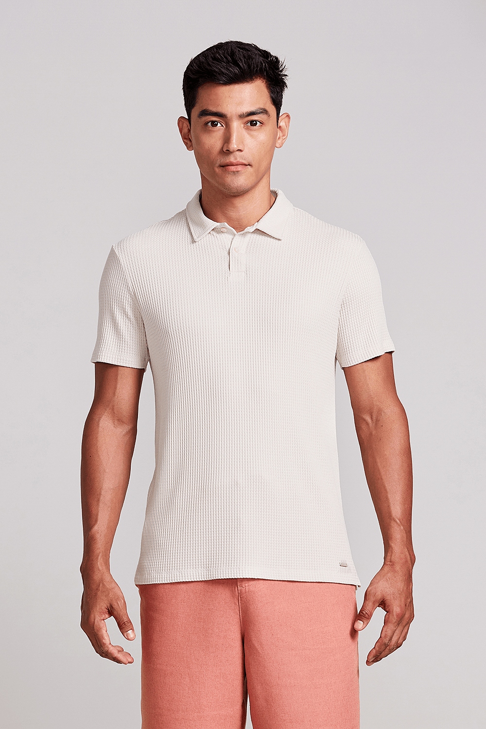 Camisa Polo Texturizada Slim Fit - Bege Areia