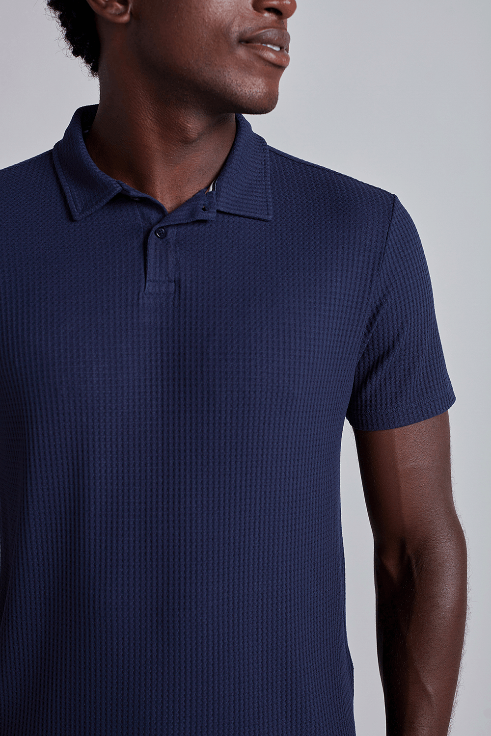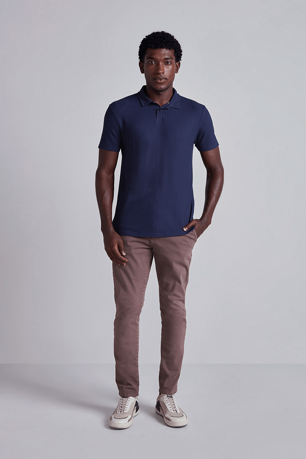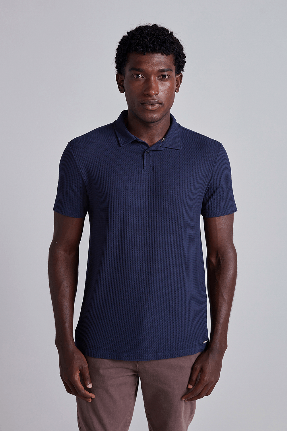 Camisa Polo Texturizada Slim Fit - Azul Marinho