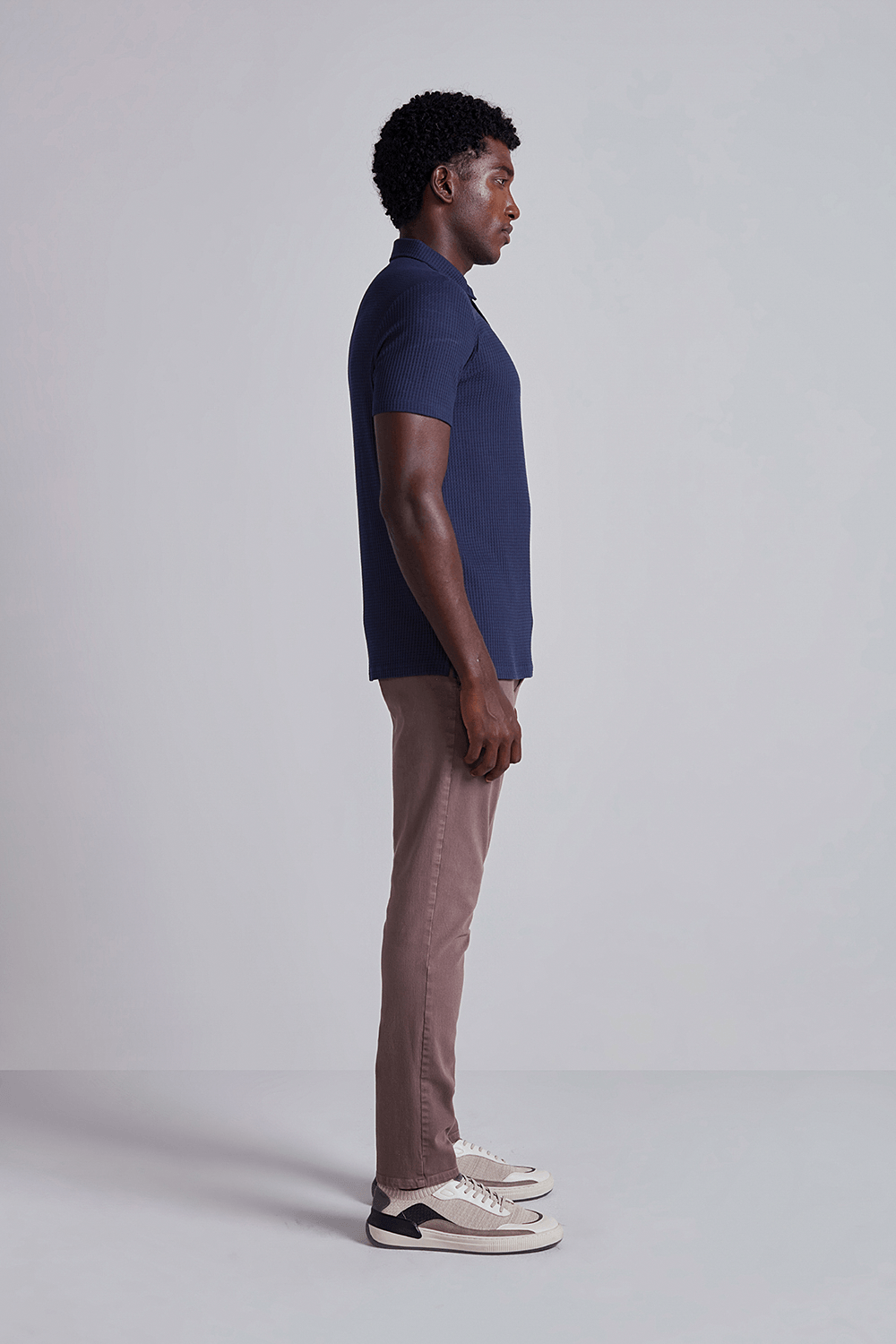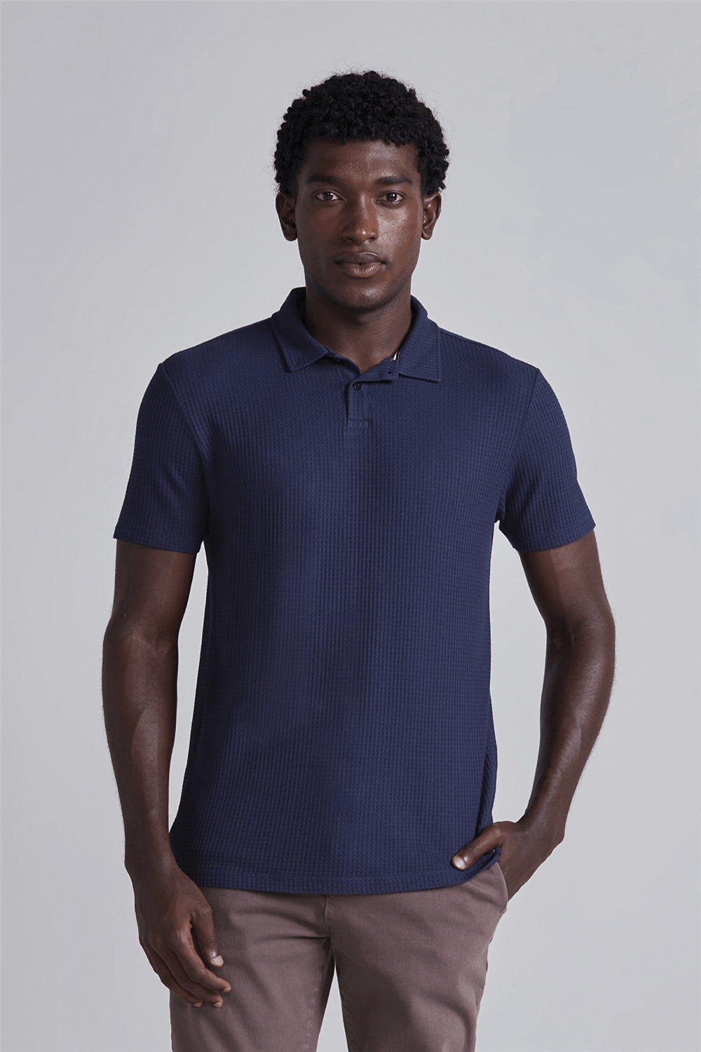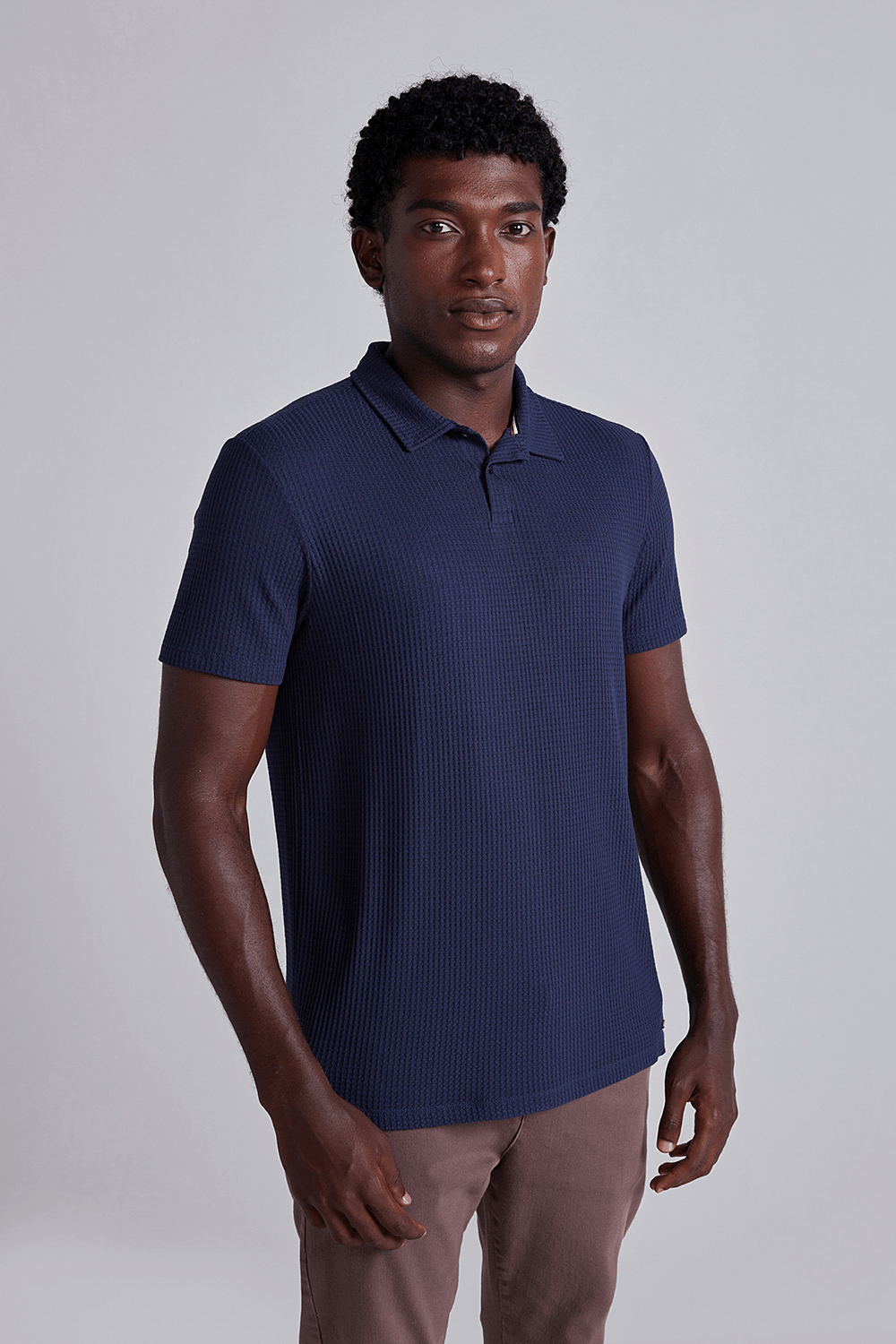 Camisa Polo Texturizada Slim Fit - Azul Marinho