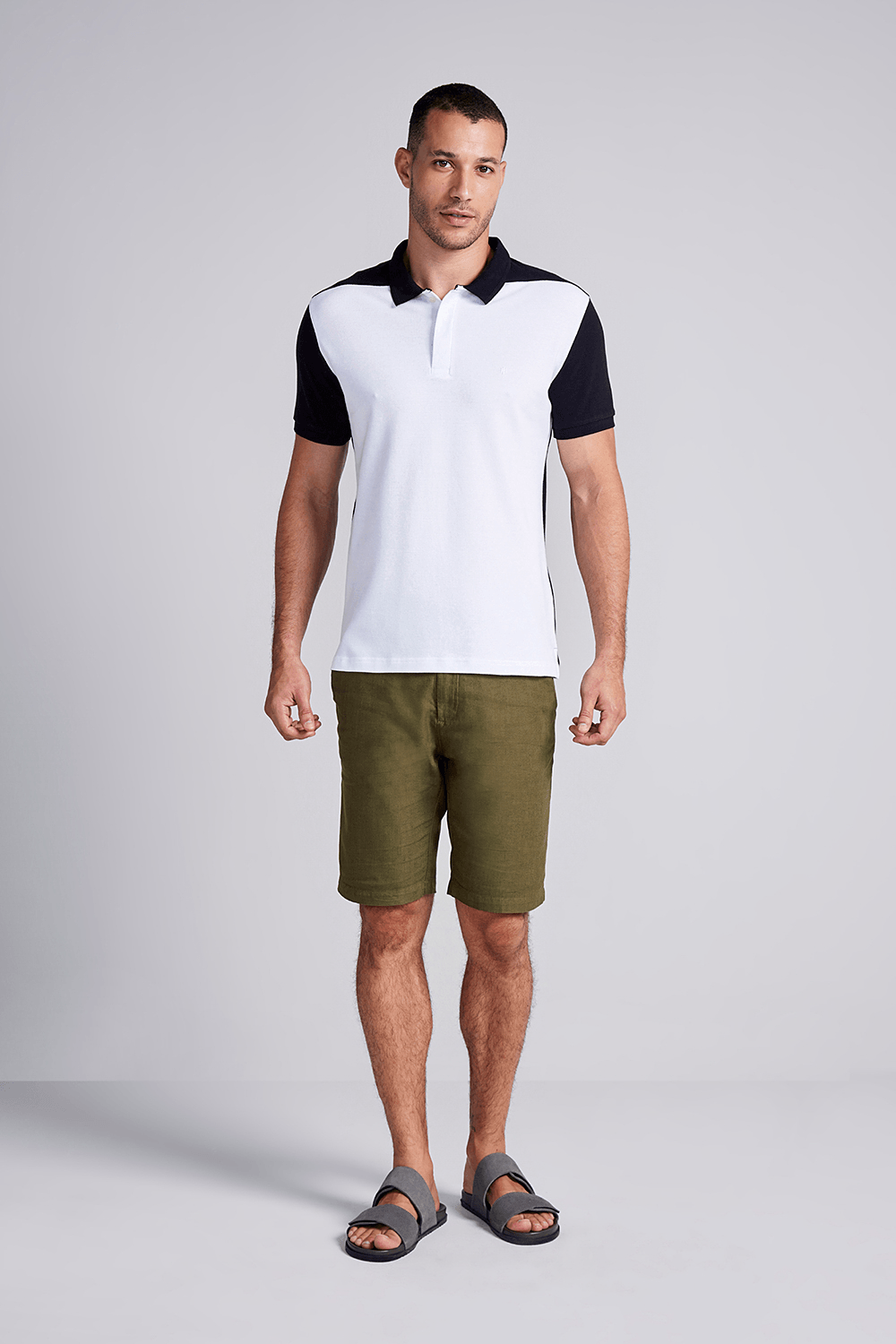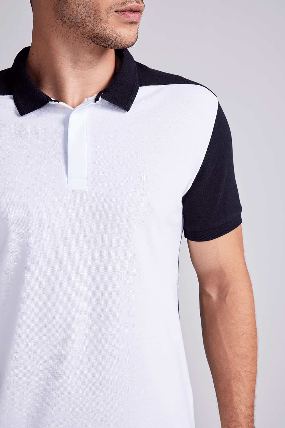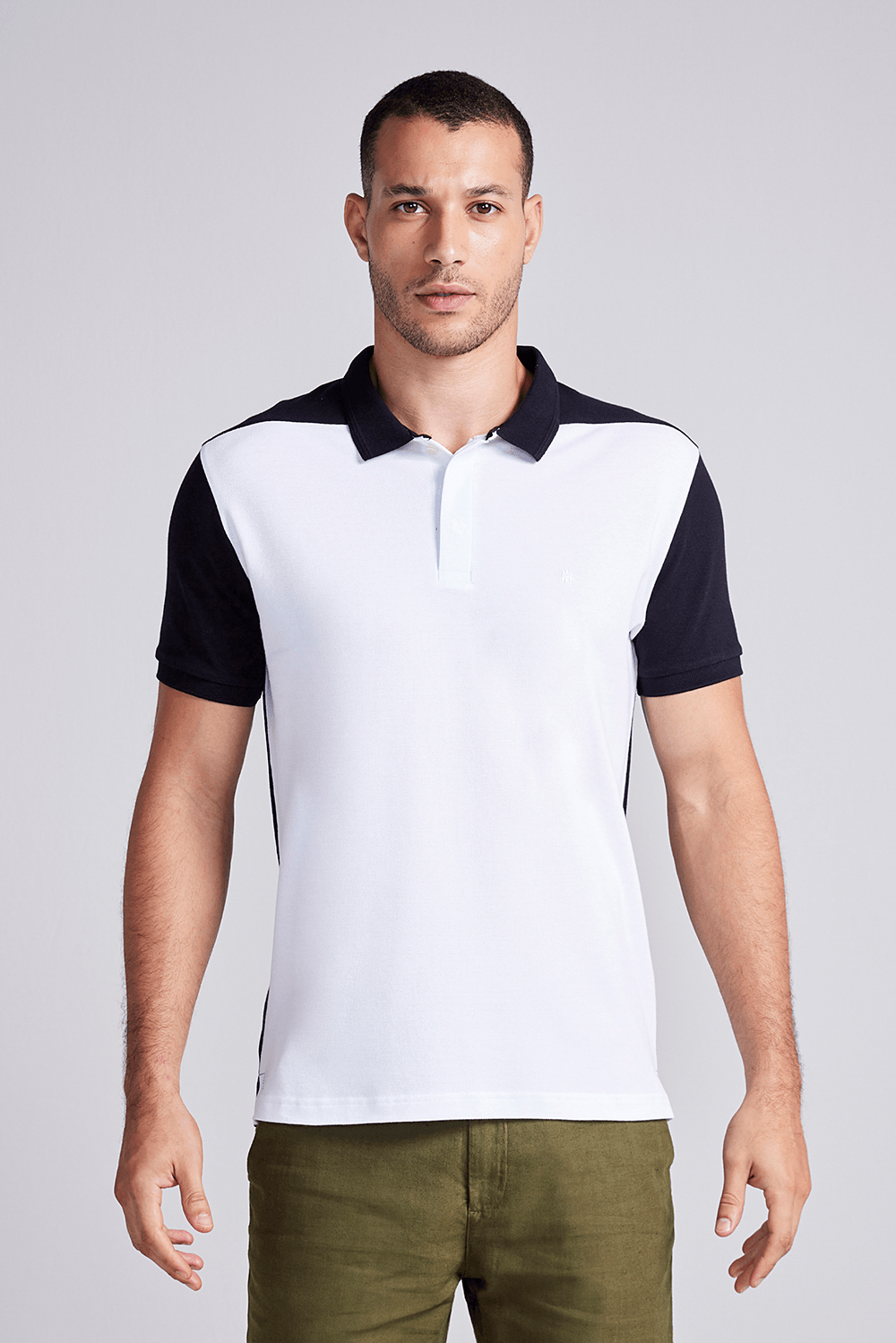 Camisa Polo Piquet Slim Fit - Preto / Branco