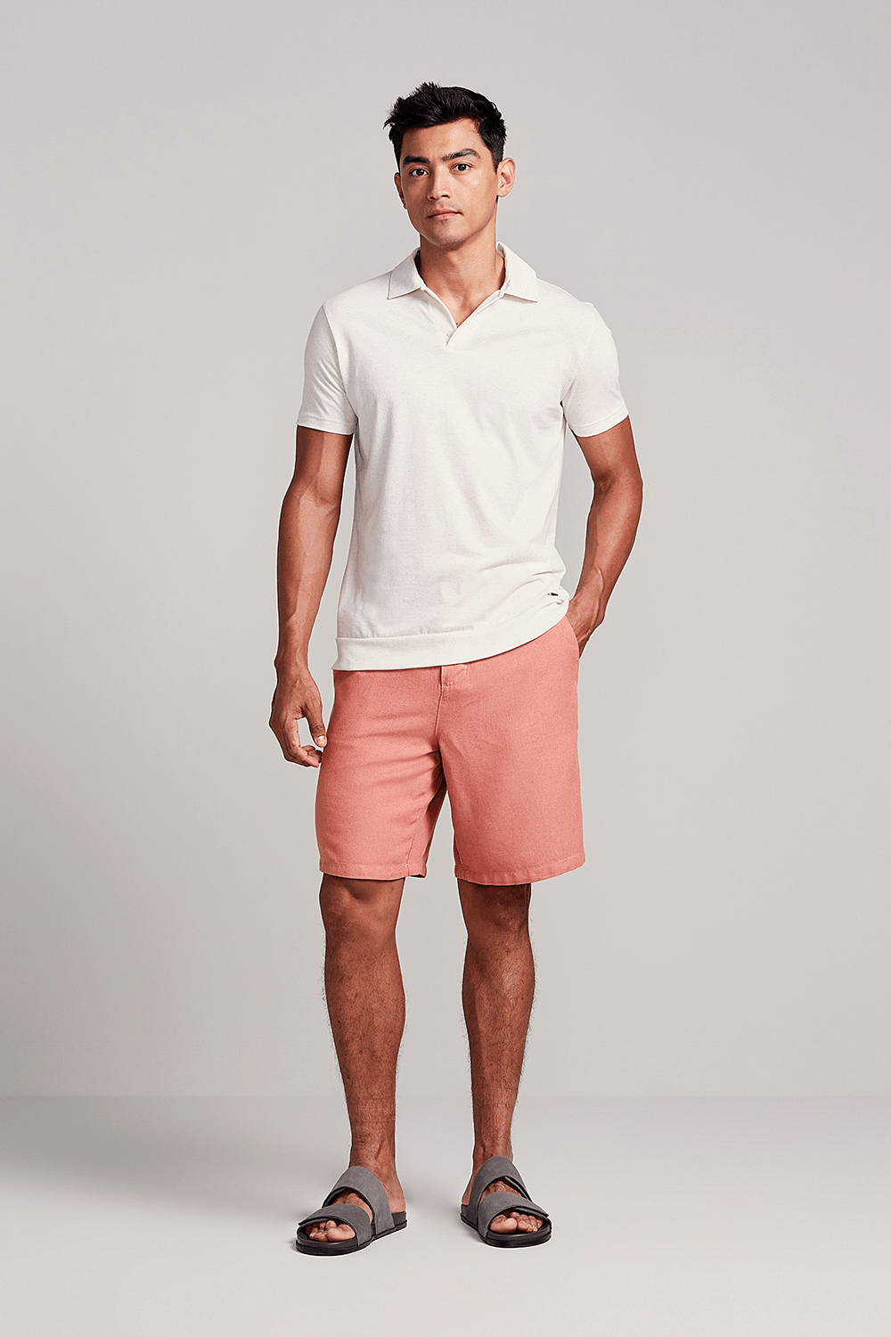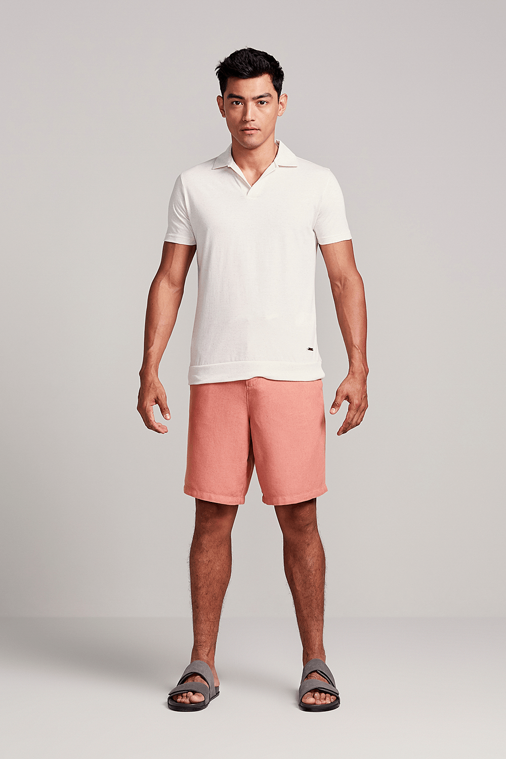A Camisa Polo Linen Blend Slim Fit é confeccionada em 50% Algodão, 43% Poliéster e 7% Linho.