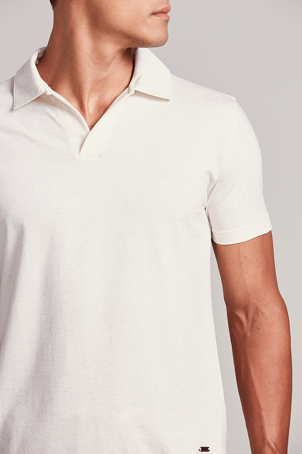 Camisa Polo Linen Blend Slim Fit - Bege Areia