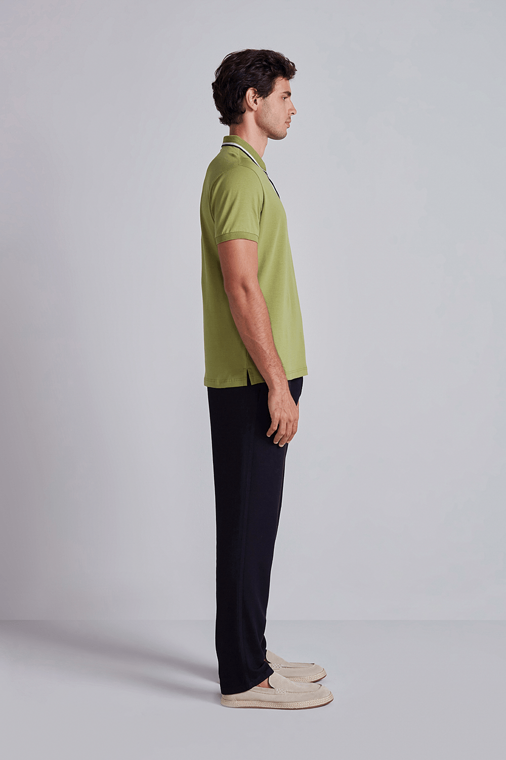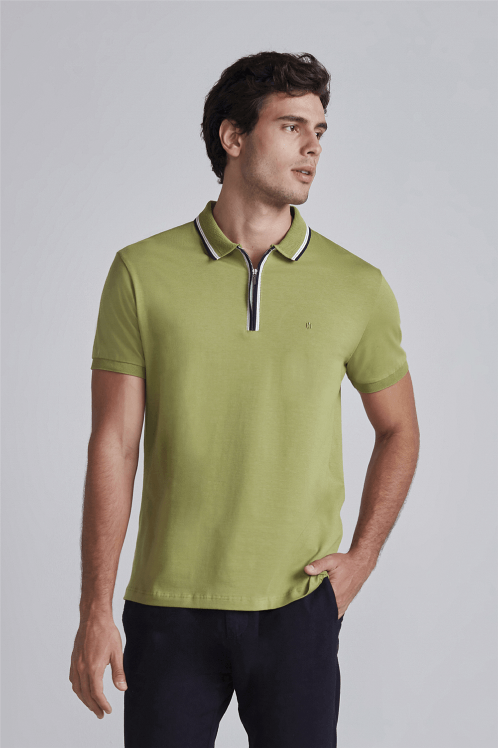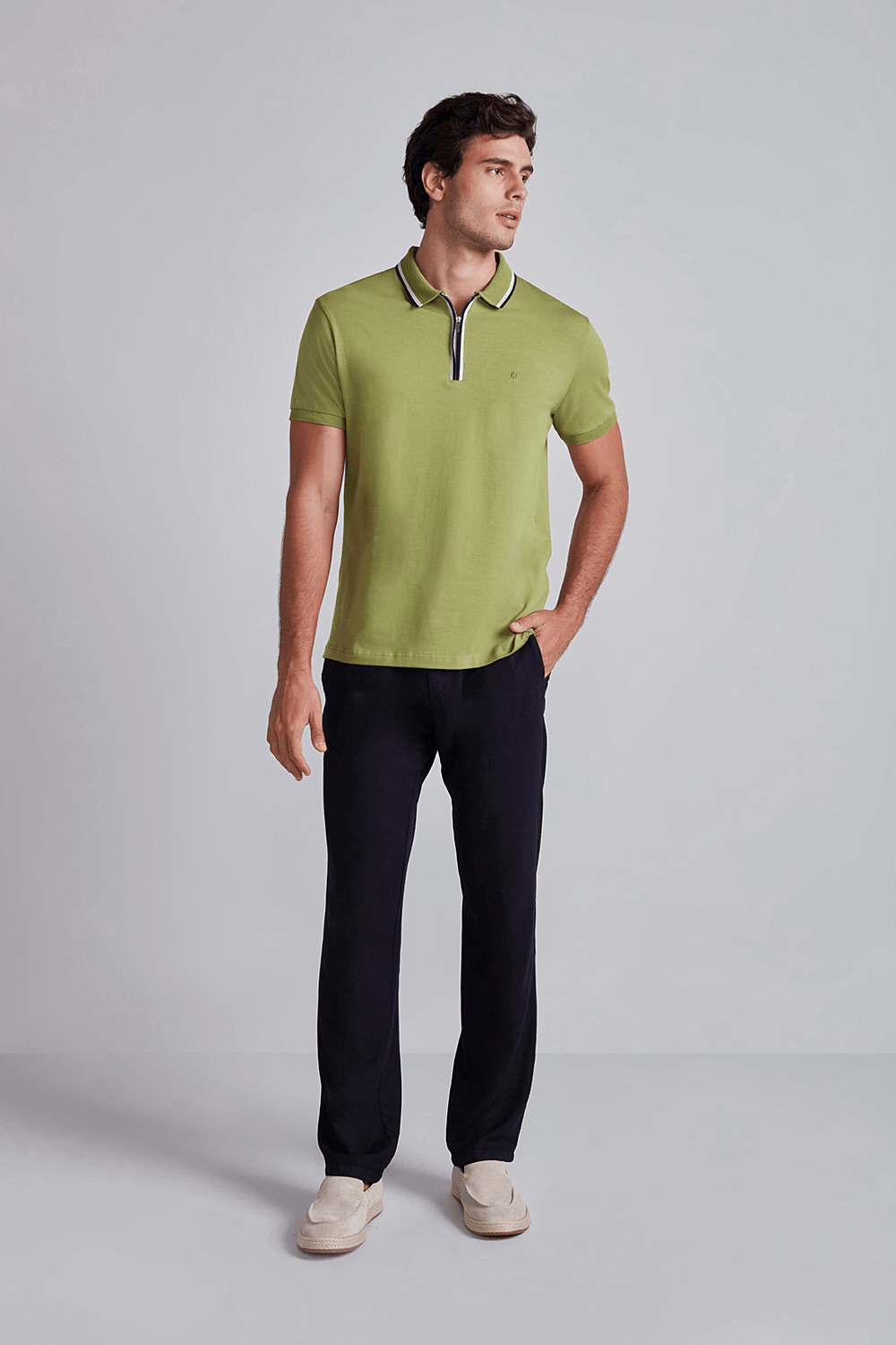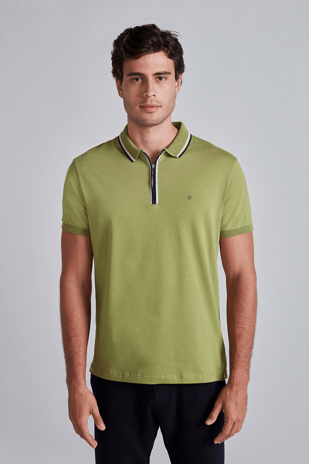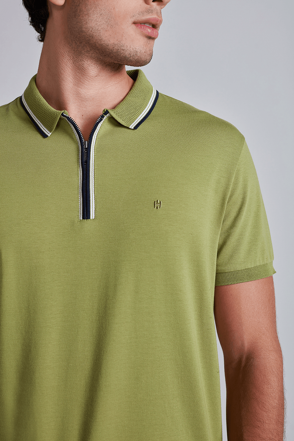 Camisa Polo com Zíper Malha Slim Fit - Verde Azeite