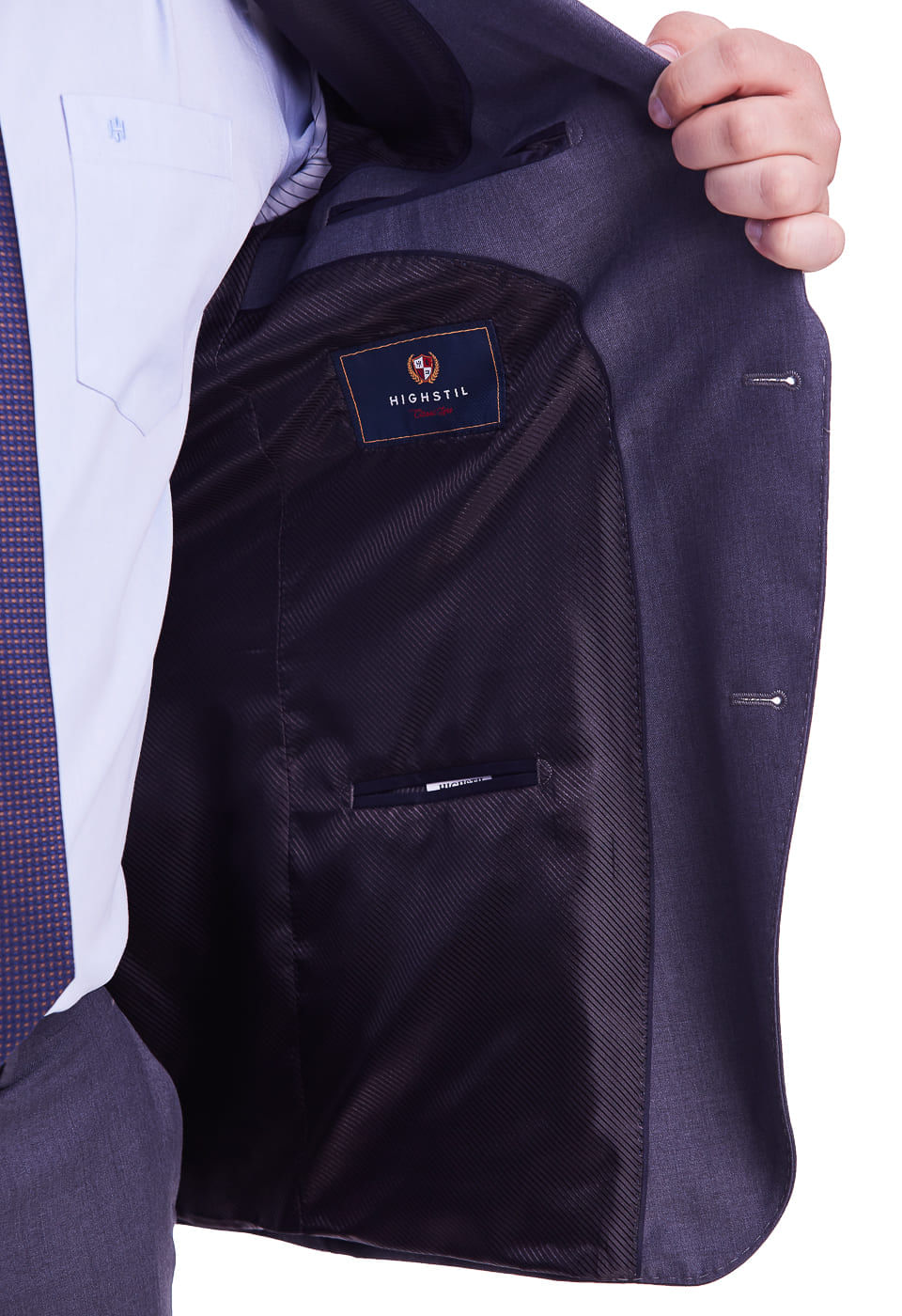 O Terno Alfaiataria Liso pertence a linha Blue Label e é composto por Poliviscose. A Poliviscose é uma fibra sintética que têm a vantagem de ser mais resistentes e durável, além de estabilizar melhor a cor e o brilho. A peça conta com 2 cortes traseiros e modelagem Slim Fit, ou seja, conta com uma forma mais ajustada ao corpo resultando em uma peça sem sobras de tecido.