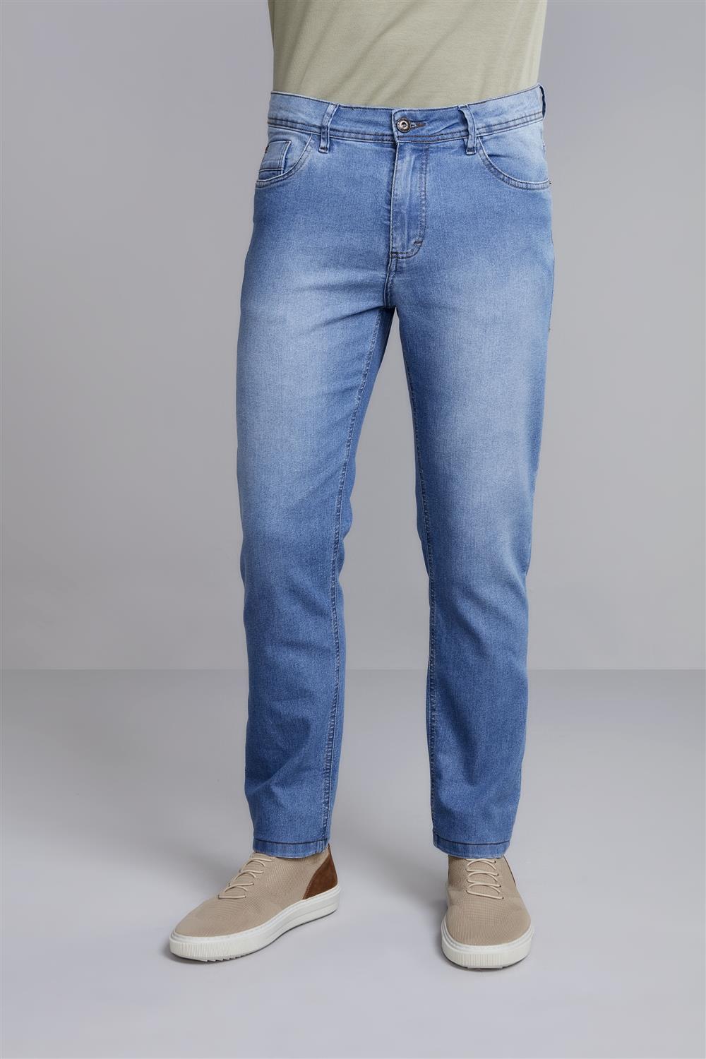 A Calça Comfort Jeans possui composição de 83% algodão, 15% poliéster, 2% elastano e é confeccionada em Jeans.