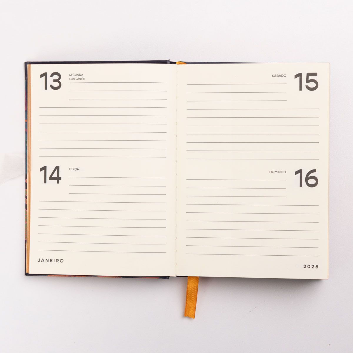 Dimensões da agenda: 18,5 cm x 13,3 cm x 2,3 cm.
