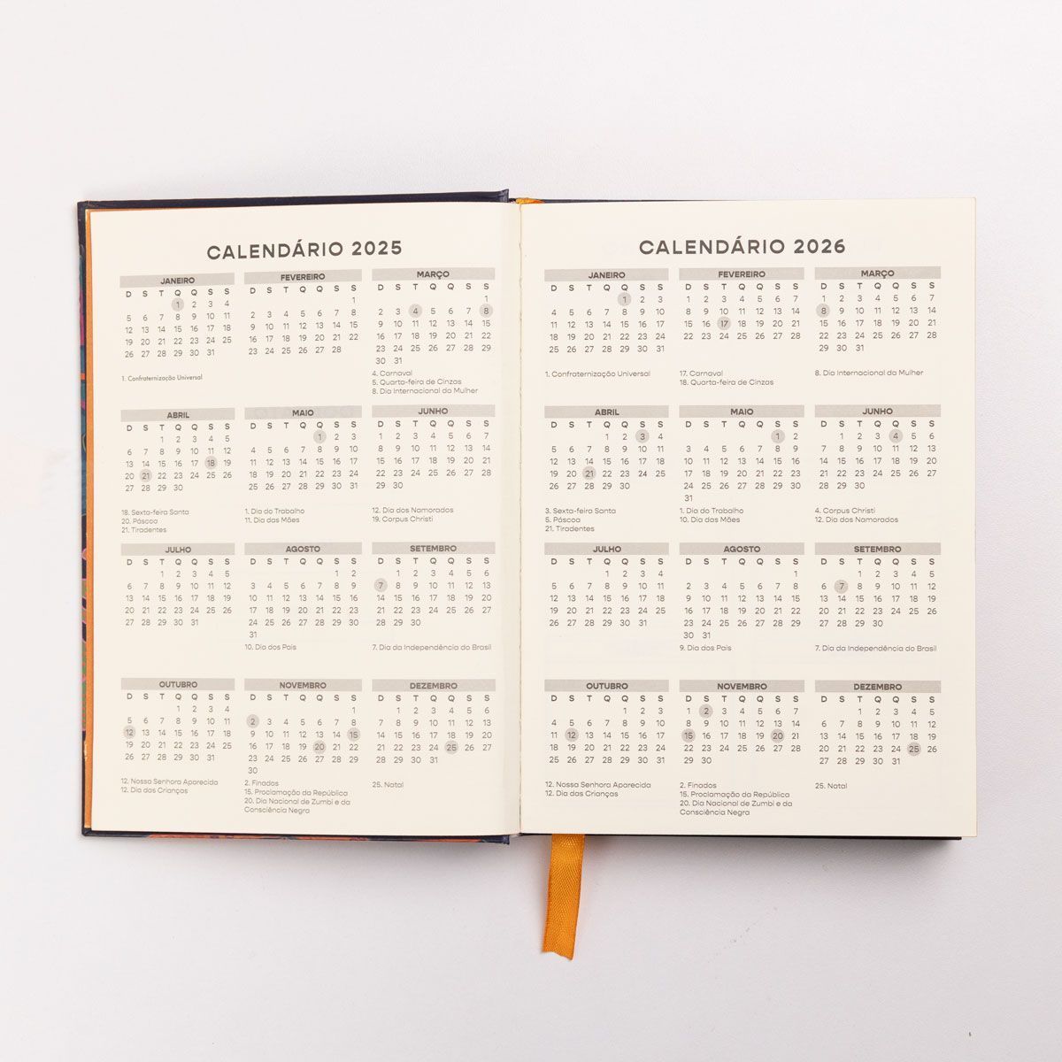 Super presenteável e perfeita para você agilizar o seu dia a dia, ela foi toda pensada para te ajudar a se organizar e tomar nota de tudo o que importa, já que além de calendários e páginas datadas, ela também traz:
