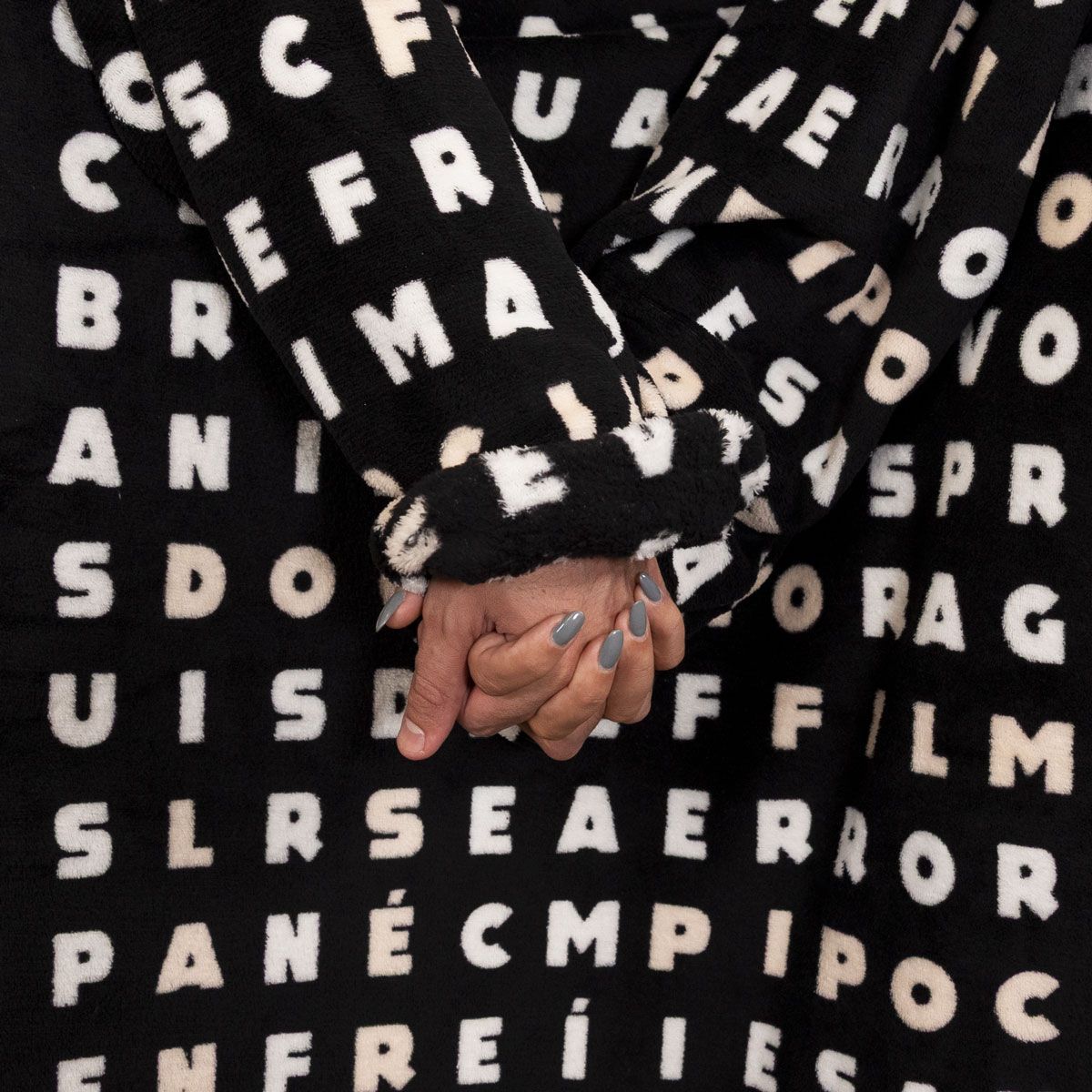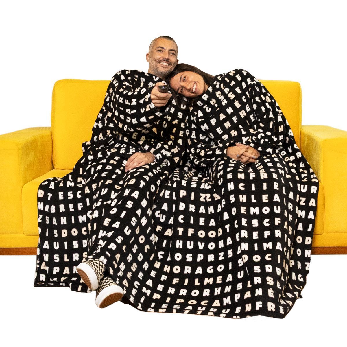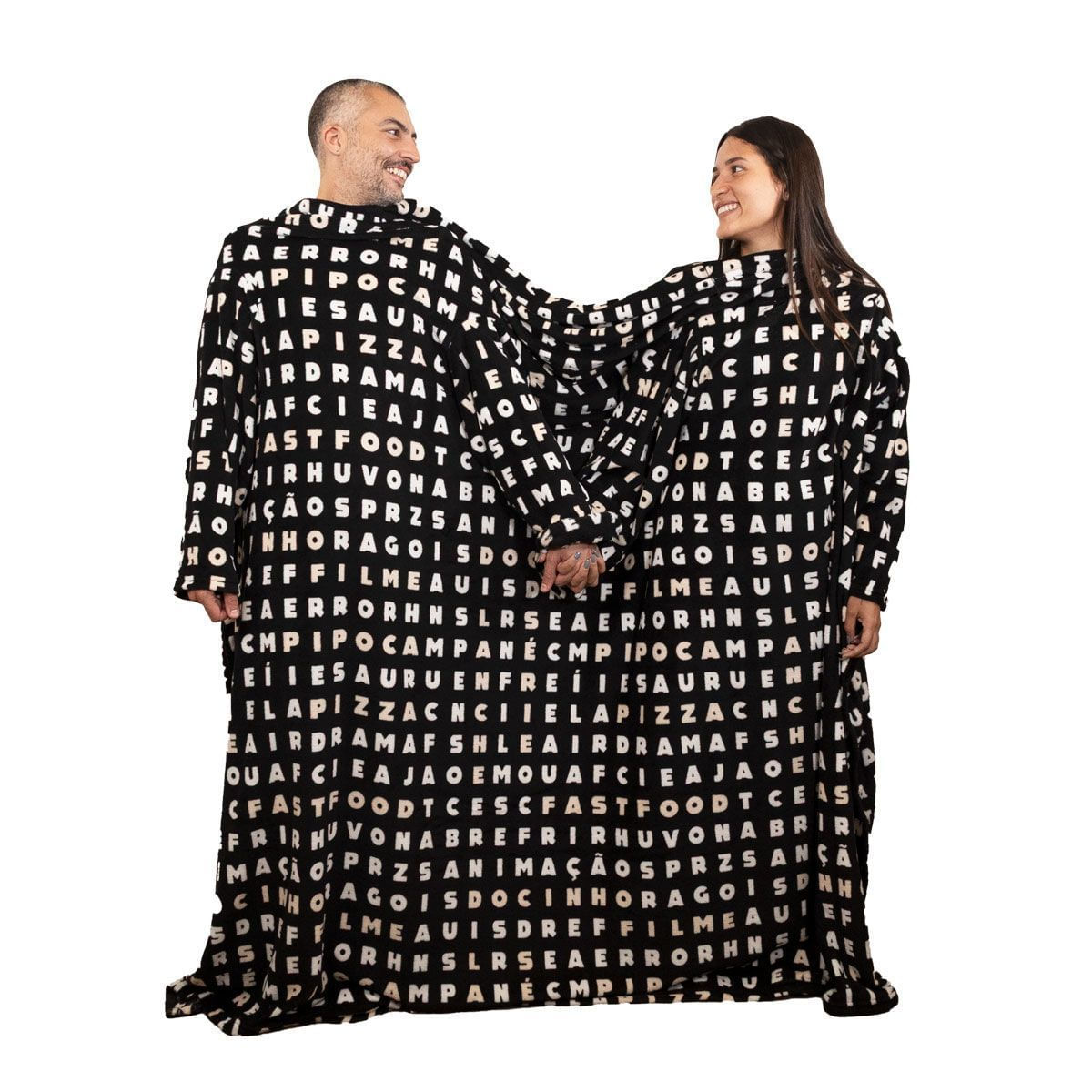Super macia e contando com 4 mangas (isso mesmo), ela permite que você e seu par mantenham os bracinhos livres e quentinhos para pegar aquela pipoquinha ou o controle da TV. Além disso, sua estampa divertida faz com que ela seja um verdadeiro caça palavras!
