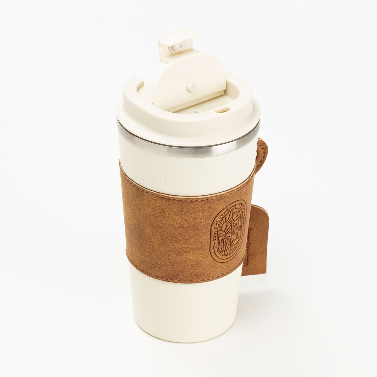 Todo na cor off-white e contando com uma estilosa cinta com pingente na cor caramelo, ele foi projetado para manter suas bebidas quentes por até 3 horas. Curtiu? Então se liga só nos detalhes que ele traz:
