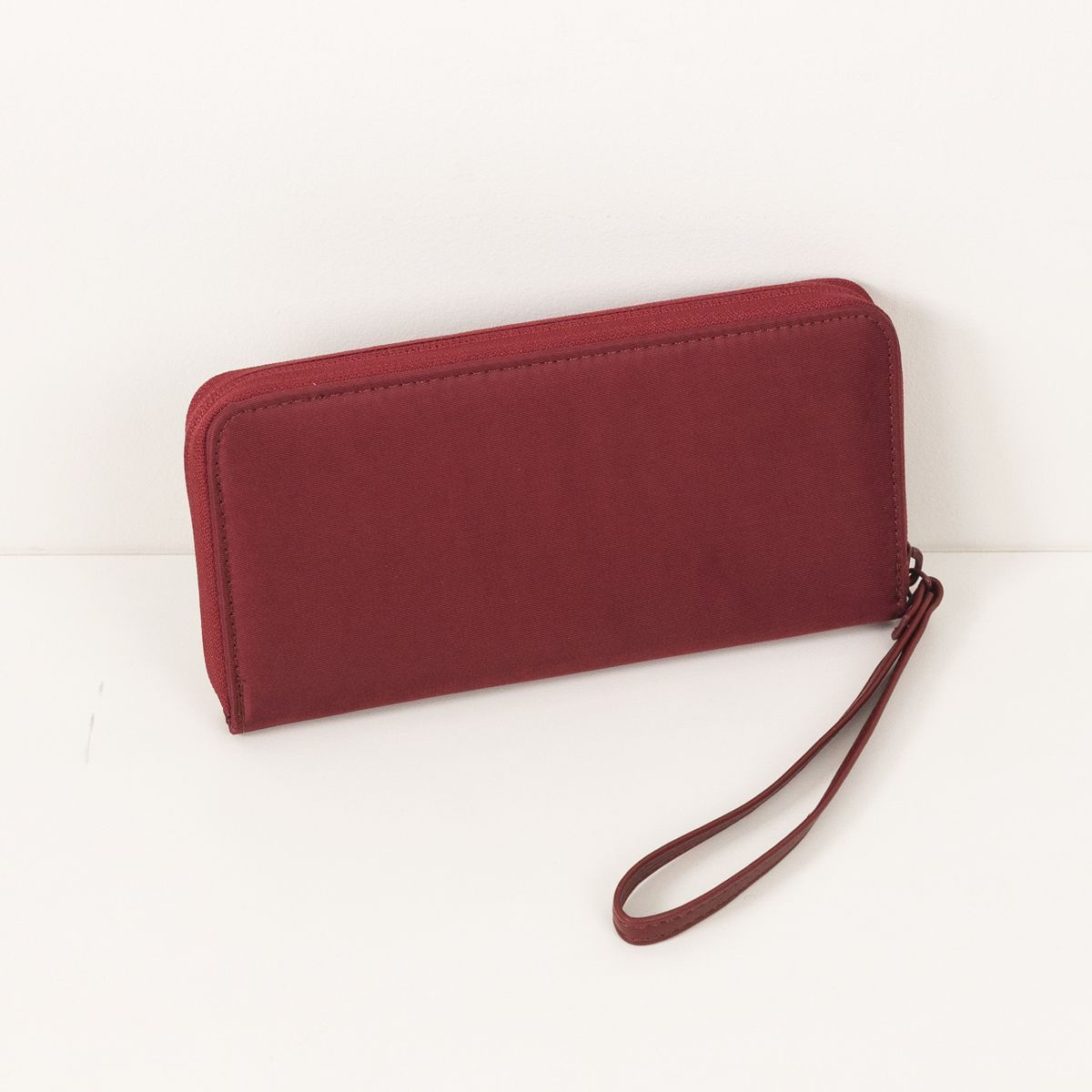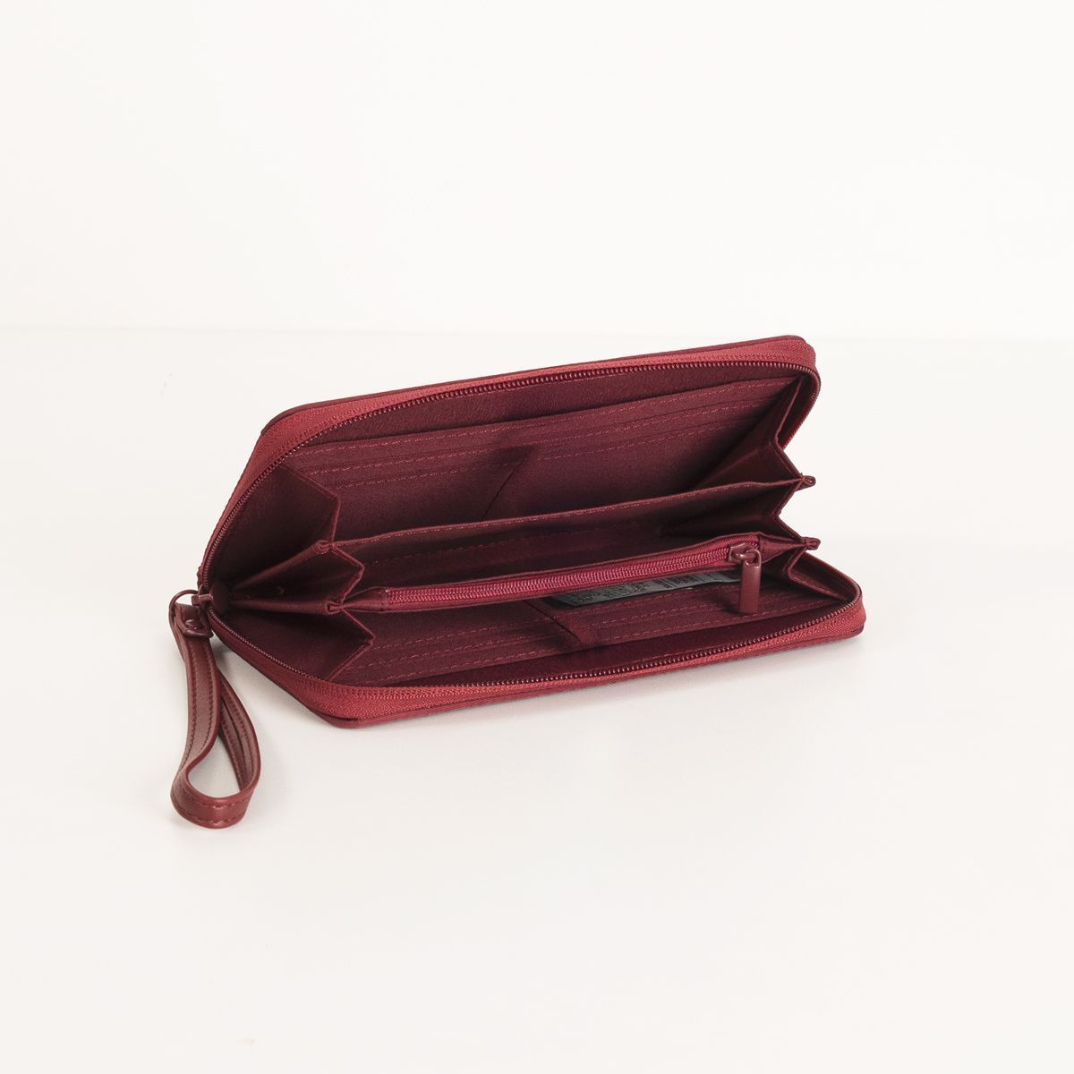 Toda em bordô e contando com uma alça de mão, essa belezinha tem tudo o que você precisa em uma carteira, então se liga só nos detalhes que ela traz: