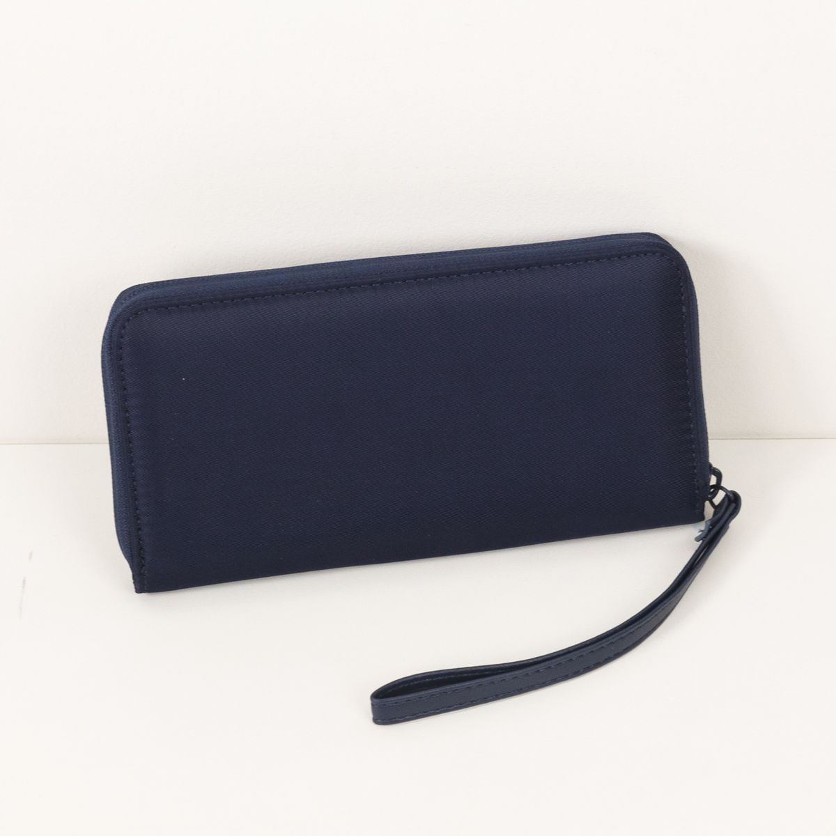 Toda em azul-marinho e contando com uma alça de mão, essa belezinha tem tudo o que você precisa em uma carteira, então se liga só nos detalhes que ela traz: