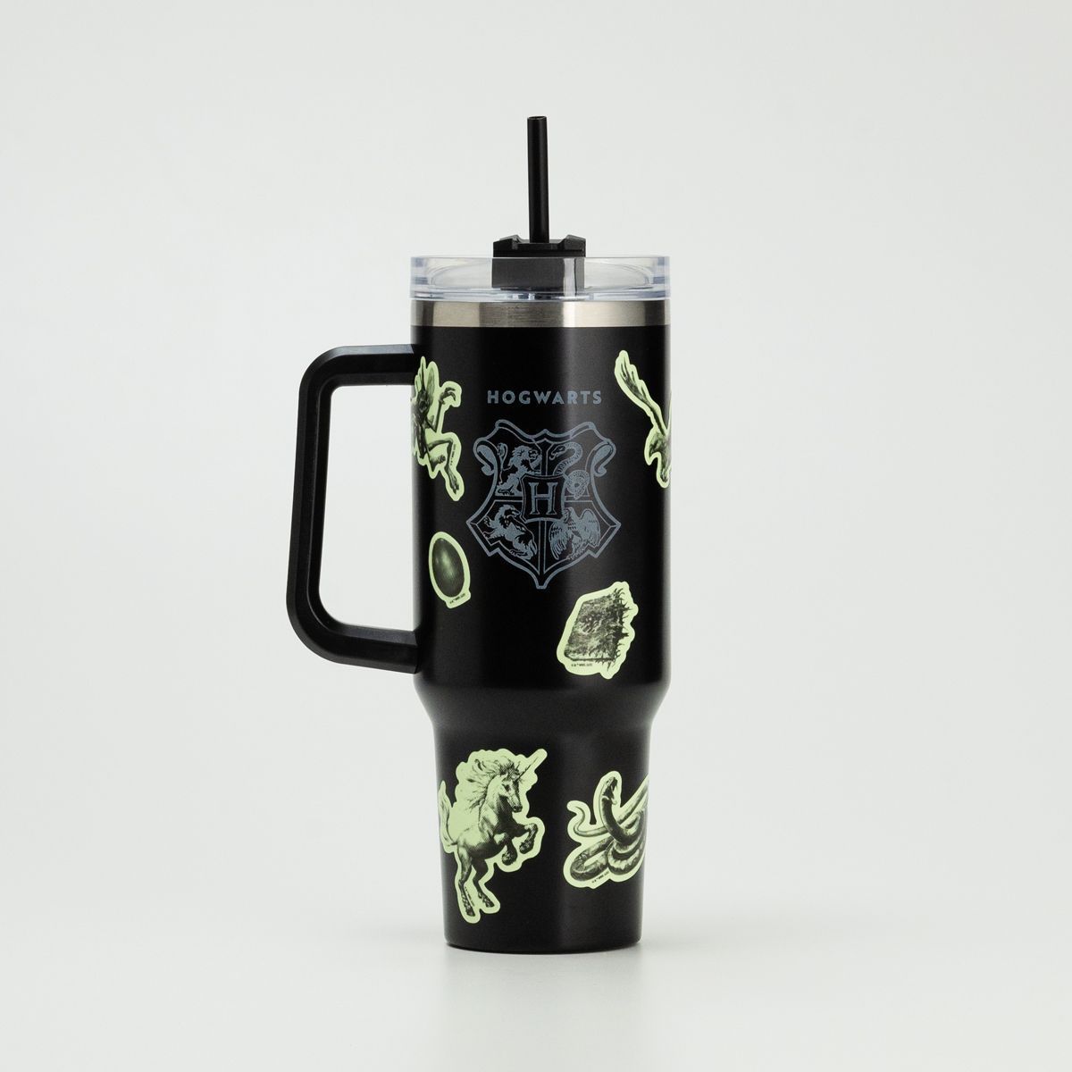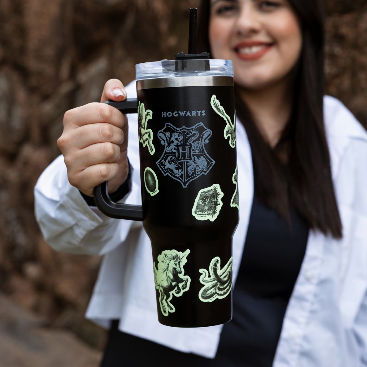 Perfeito para adicionar mais estilo e magia à sua rotina de hidratação, nosso Copo Térmico Alça HP Brilha no Escuro também é a opção certa para presentear aquela pessoa querida que é super fã da saga Harry Potter!