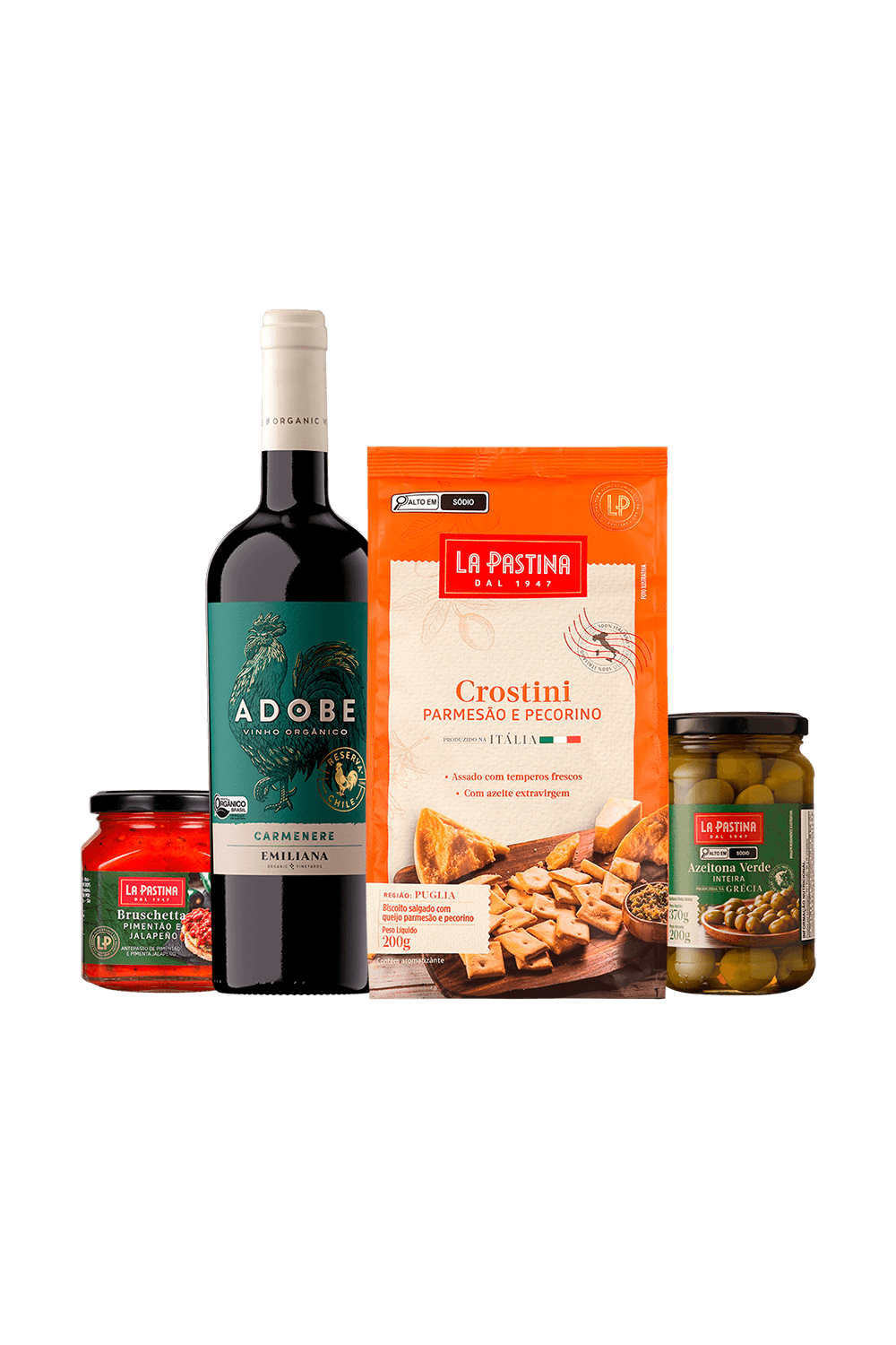 Uma seleção pensada para quem aprecia momentos de sabor e praticidade com um toque de sofisticação. Este kit reúne produtos que harmonizam entre si e convidam a uma deliciosa experiência mediterrânea: a Bruschetta de Pimentão com Pimenta Jalapeño, levemente picante e aromática; os Crostini com Parmesão e Pecorino, ideais para acompanhar; e as Azeitonas Verdes Gregas Inteiras, com textura firme e sabor marcante.
