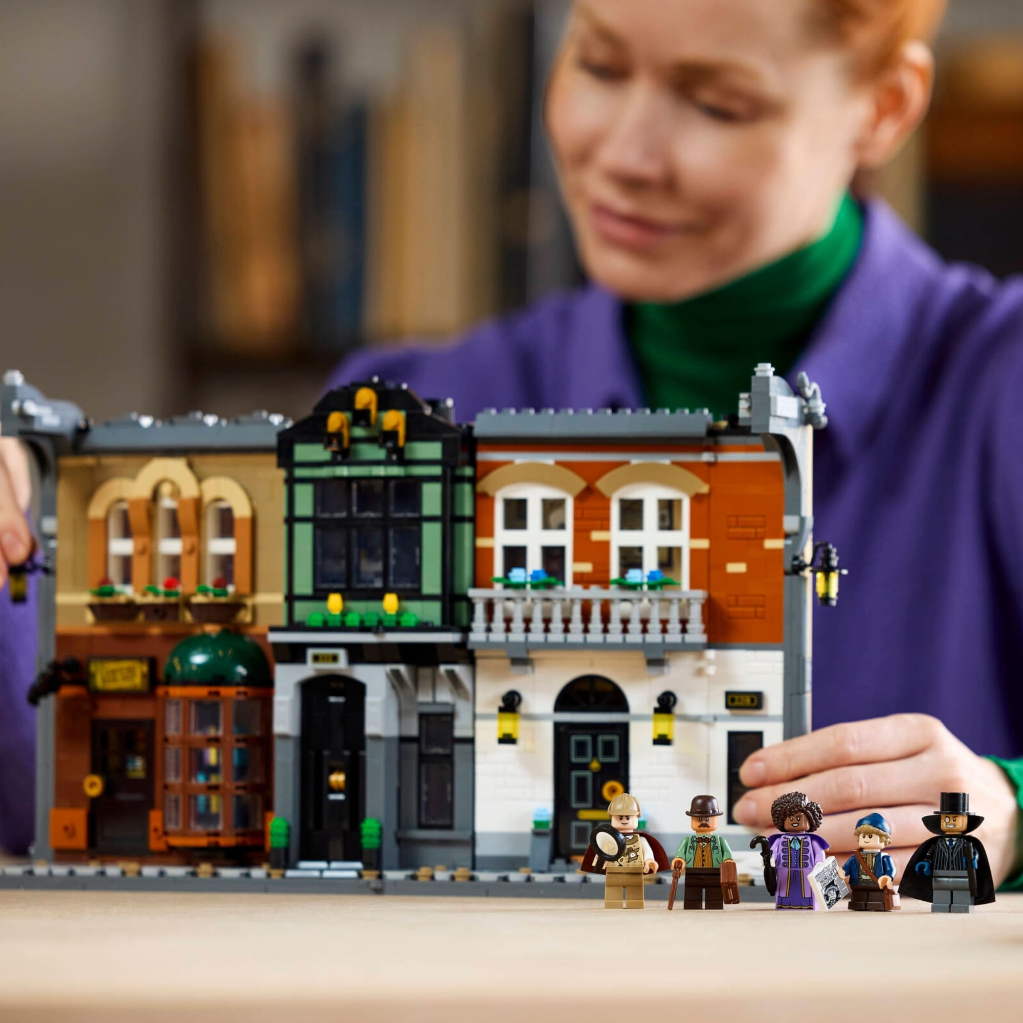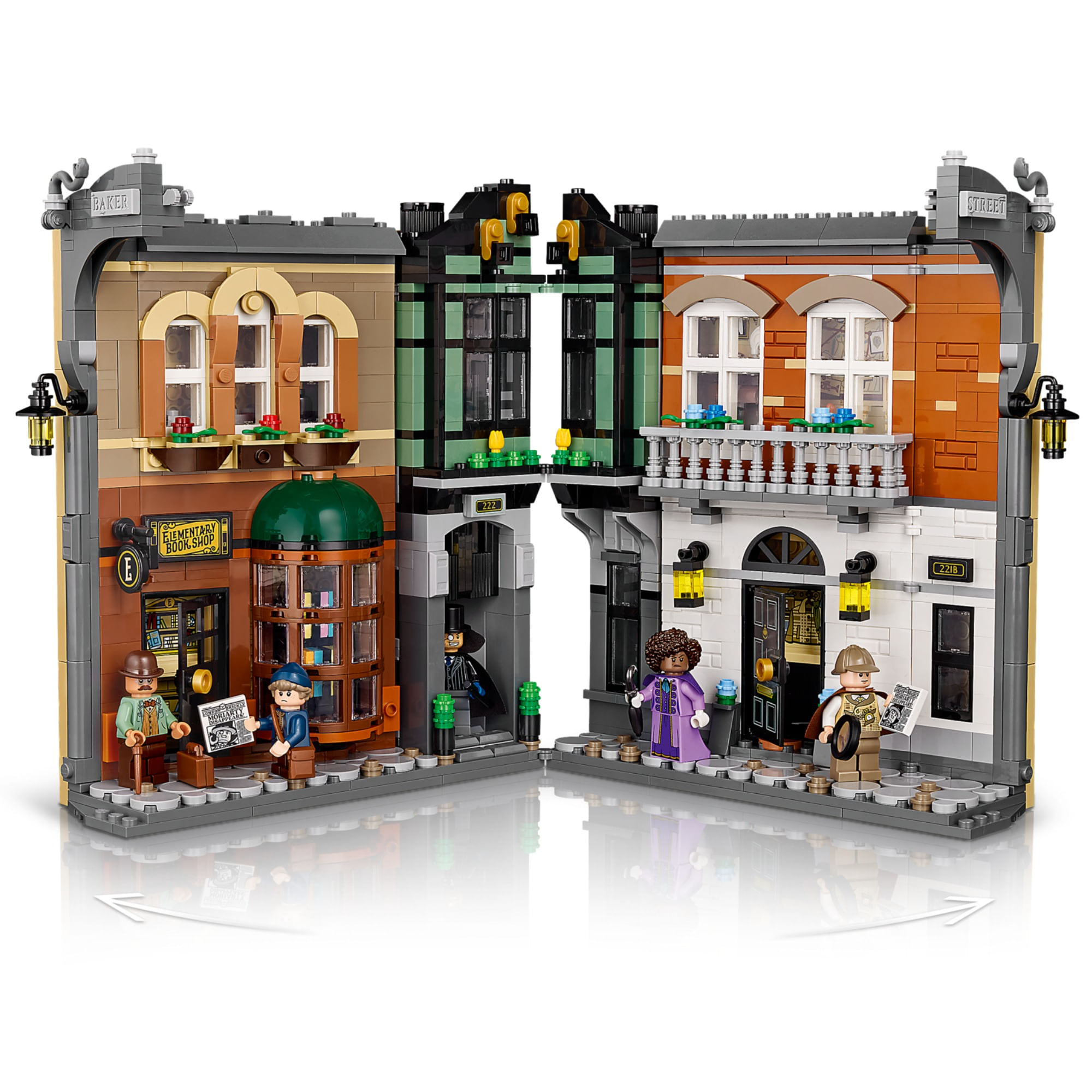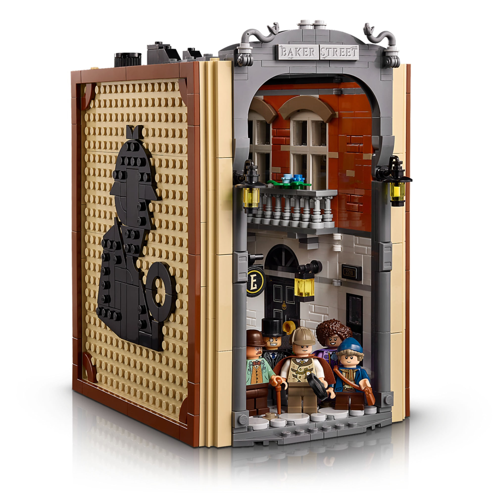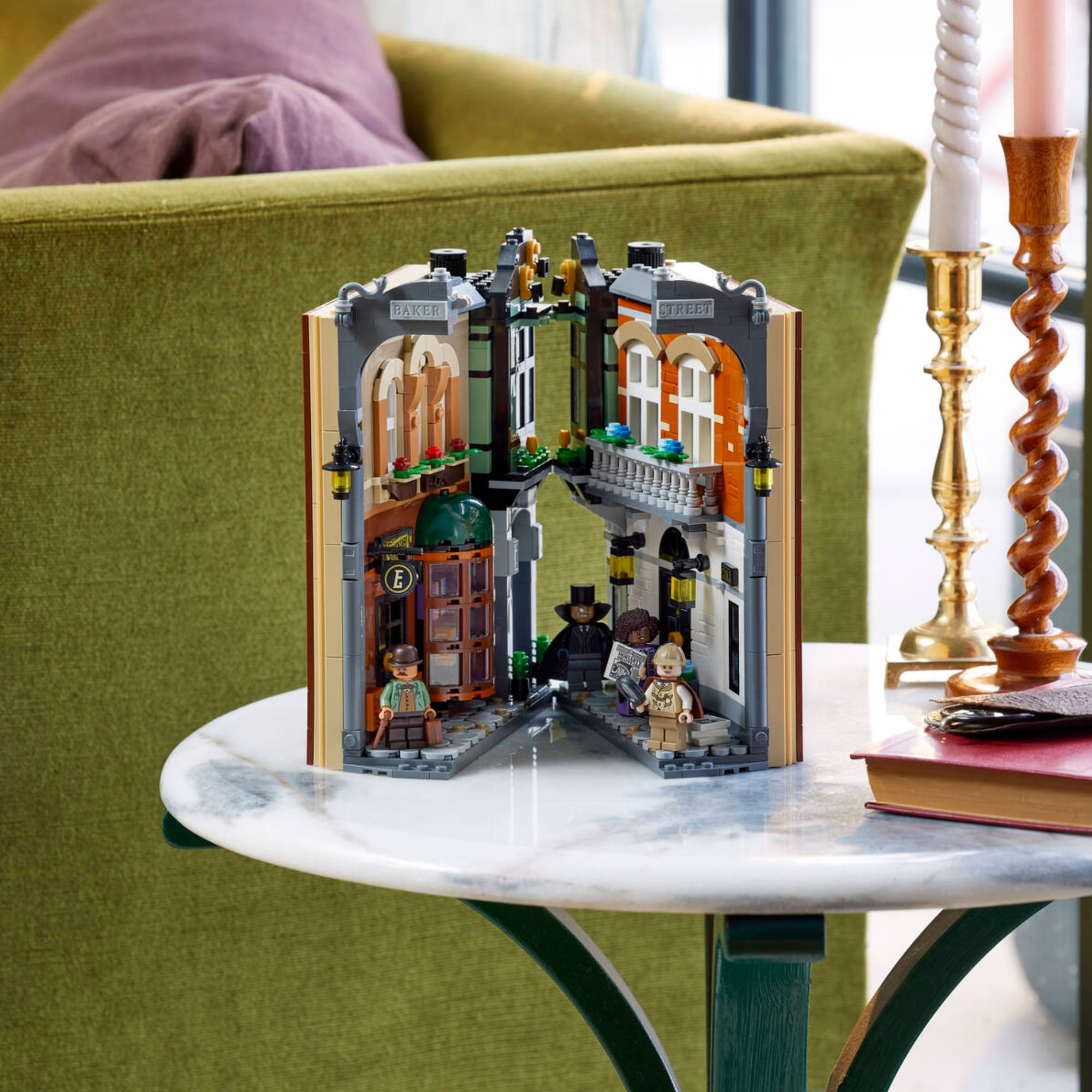 Mais do que um canto de livros – Gire um botão para levantar a porta do esconderijo do Professor Moriarty e abra a fachada do 221B para revelar o apartamento de Sherlock Holmes com lareira, quadro de dicas e violino