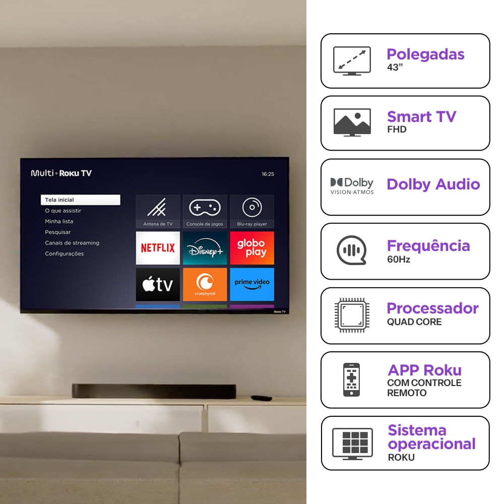 Smart TV Multi Roku 43" Smart DLED com imagem FHD Wi-fi 3 HDMI compatível com Alexa e Google Home - TL056MOUT [Remanufaturado]