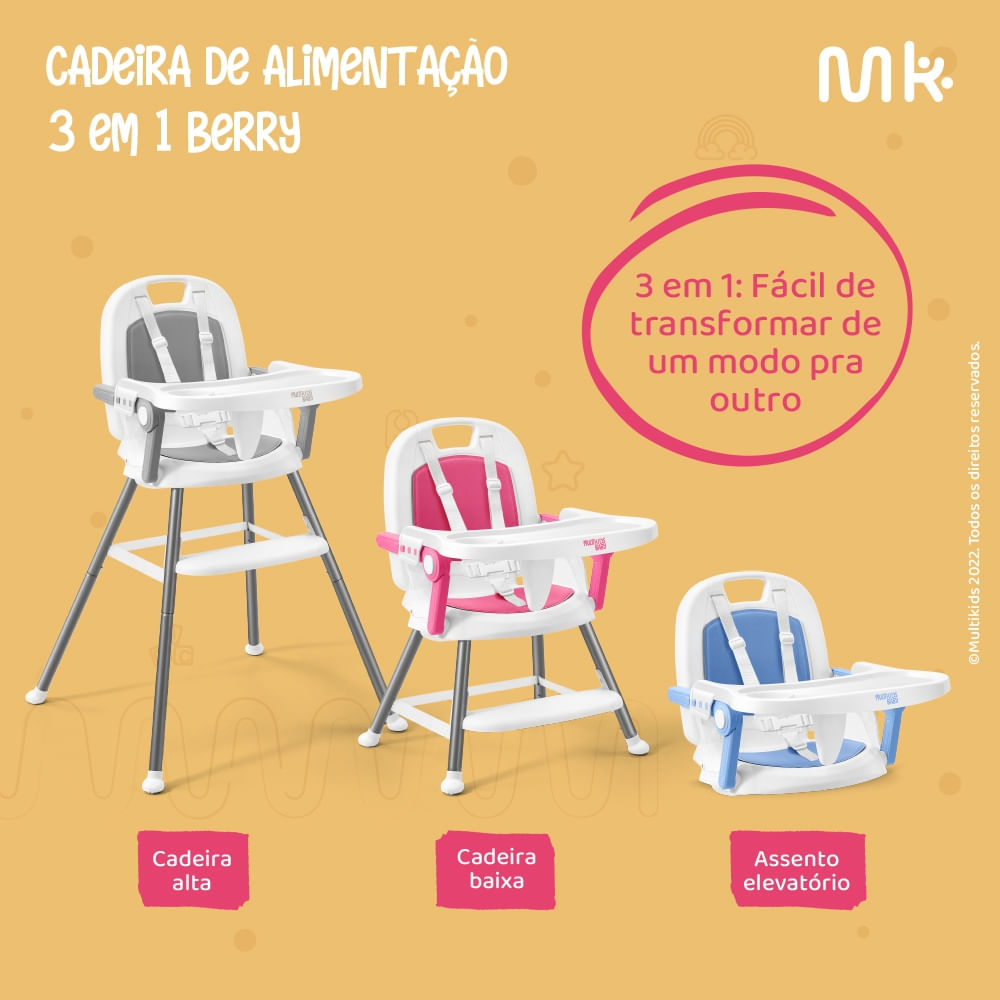 Cadeira de Alimentação Berry 3 em 1 Rosa Multikids Baby - BB390OUT [Remanufaturado]