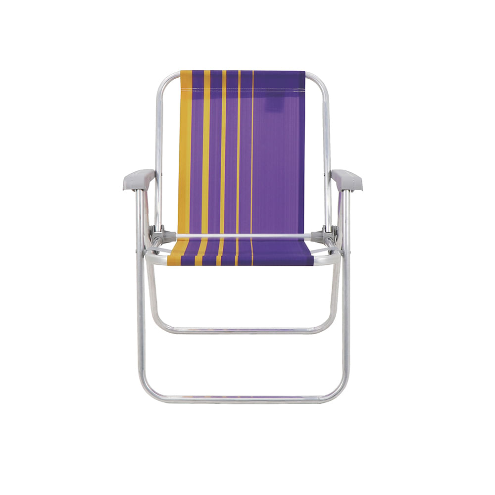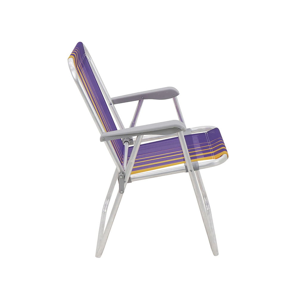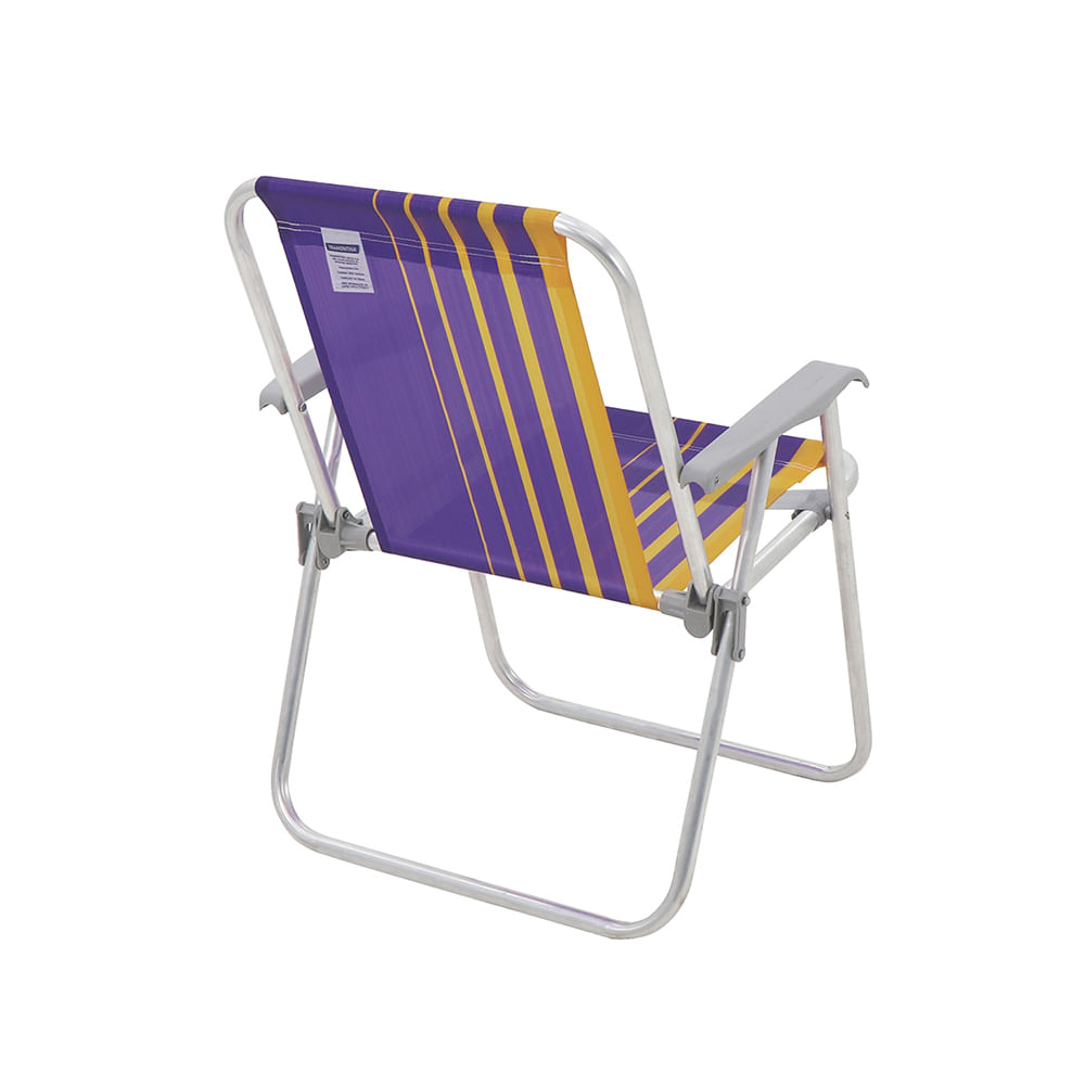 Cadeira de Praia Samoa Alta em Alumínio com Assento Roxo e Amarelo - Tramontina Cadeira de Praia Tramontina Samoa Alta em Alumínio com Assento Roxo e Amarelo Peso Máximo Recomendável: 110 kg Fabricação: Apoios em polipropileno injetado, tubo em alumínio natural e tela em polietileno com proteção ANTI-UV.Modelo: Dobrável Para curtir aqueles dias de sol deliciosos na praia, piscina ou num acampamento, a cadeira de praia Tramontina Samoa Alta em alumínio com assento roxo e amarelo é indispensável. Desenvolvida com design inspirado na ilha de Samoa e na cor roxa e amarela, ela tem estrutura em alumínio e assento reforçado que garantem capacidade para 110 quilos. Os detalhes são todos na cor cinza e proporcionam uniformidade visual e um acabamento excelente, além de deixá-la ainda mais moderna! Faricante: Tramontina
