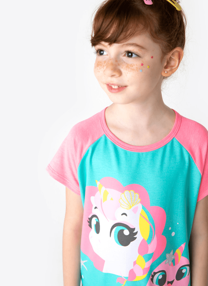 Camisola Manga Curta Viscolycra Menina Unicórnio