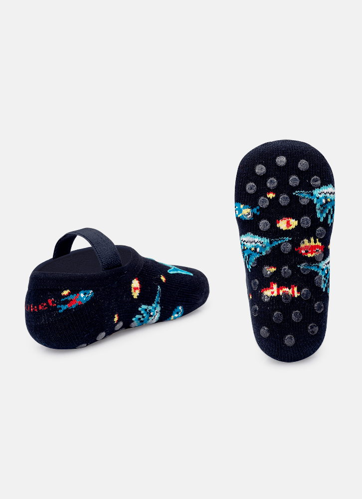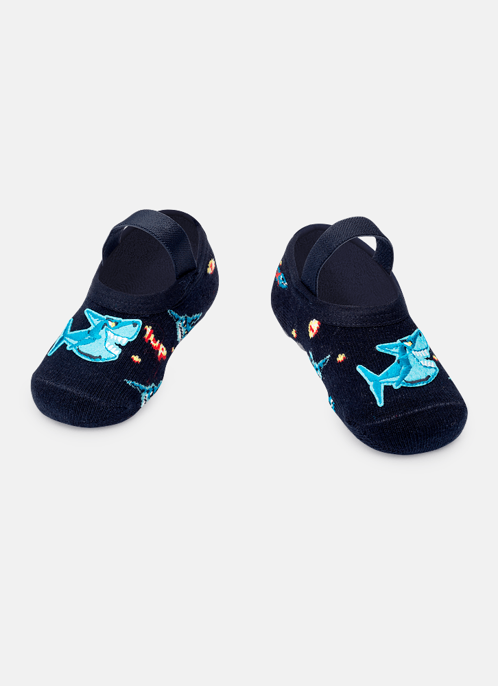 Meia Sapatilha Antiderrapante com Aplique Bebê Tubarão Gamer