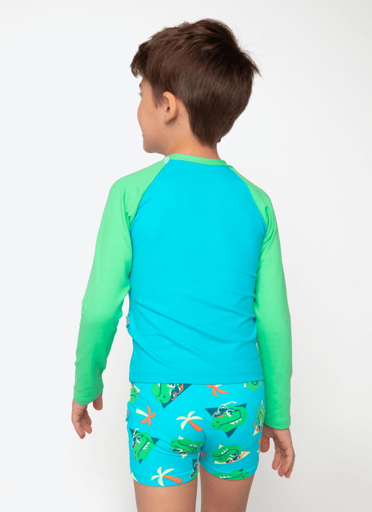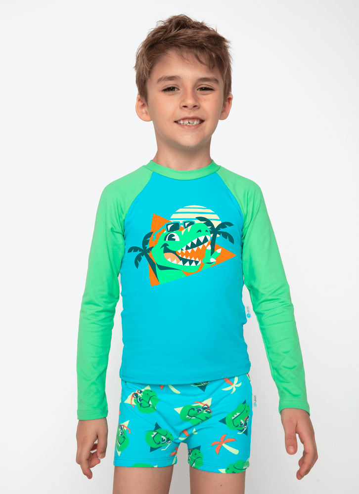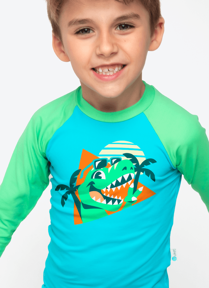 Descrição: camiseta kids Dino Miami. Possui manga longa raglan e estampa frontal toque zero. Nome do Produto: Camiseta ML kids Monster cars. Modelagem: manga longa raglan Estampa: estampa frontal toque zero; Tecido externo: 85% poliéster e 15% elastano. Tecido interno: 90% poliamida e 10% elastano. Ocasião de uso: Ideal para usar em clubes, academias, piscinas, praia. Grade: 1 / 2 / 4 / 6 / 8 Diferencial do produto: tecido com toque macio, altamente resistente ao cloro; proteção solar UV (não substitui o uso de filtro solar); conforto. Como lavar e conservar bem meu produto: Lavagem à mão, temperatura máxima de 40c; não alvejar / não branquear; não secar em tambor; secagem em varal; não passar; não limpar a seco, não remover manchas com solventes; não guarde a peça úmida ; não use amaciantes ou produtos com alvejantes a base de cloro; evite contato com superfícies ásperas ; cloro e bronzeadores podem manchar o produto; após o uso, enxague bem a peça com agua fria; a contínua exposição à luz forte e água clorada pode deteriorar alguns tipos de tecidos e cores. Garantia por defeito: Deverá ser encaminhado dentro da embalagem original; Sem indícios de uso; acompanhado de nota fiscal e com todos os itens constantes na solicitação de troca.