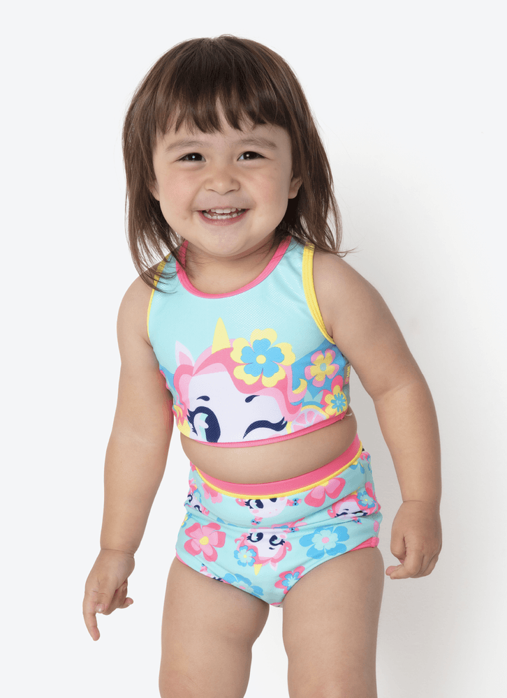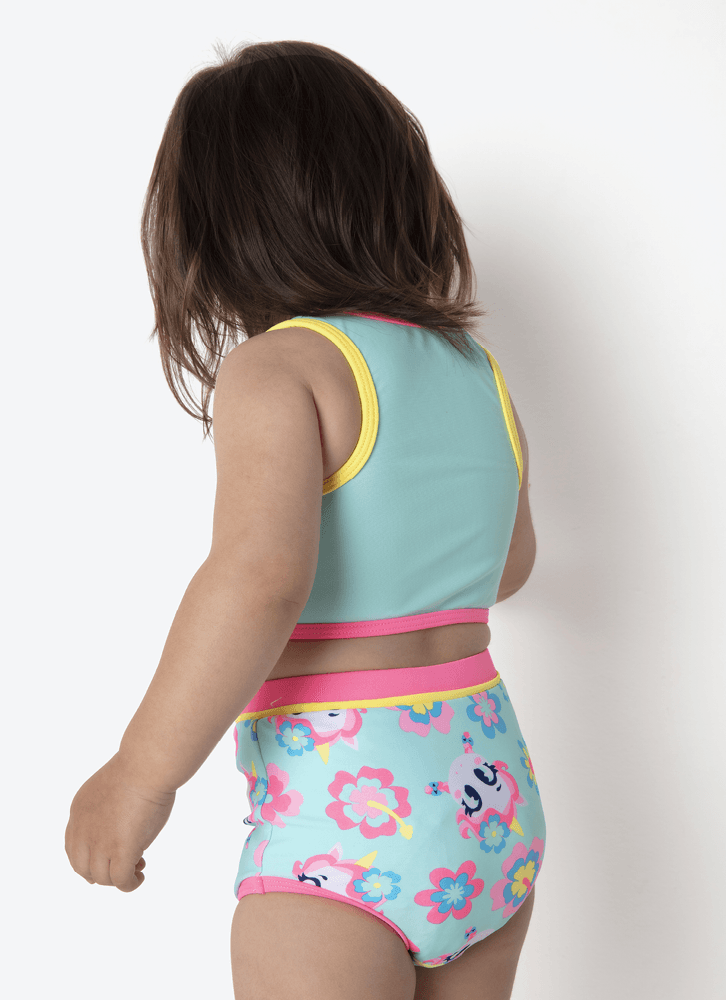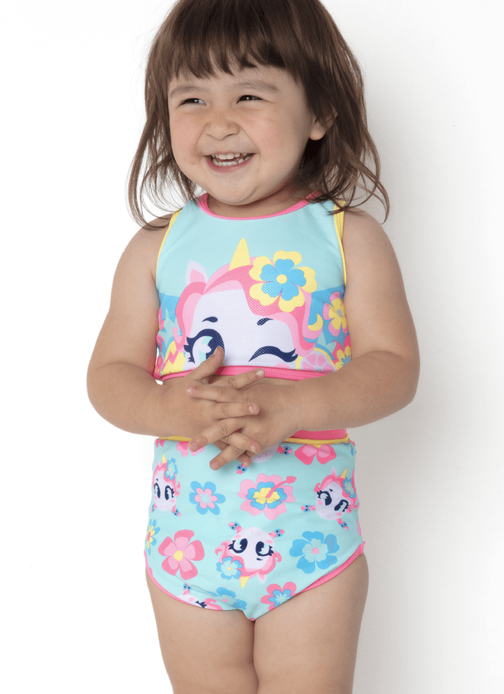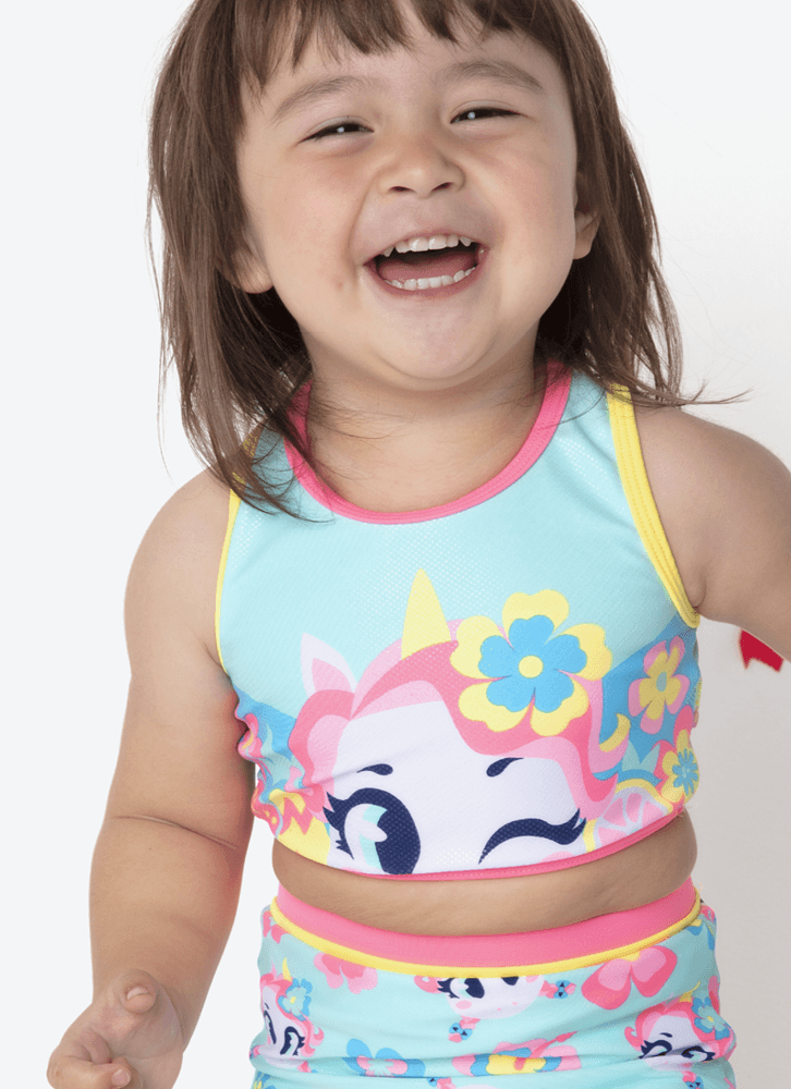Descrição: Biquíni baby Unicórnio. Possui calcinha em estampa corrida e top em estampa frontal toque zero com foil transparente salpicado. Nome do Produto: Biquíni baby Uni Aloha. Estampa top: estampa frontal toque zero com foil transparente salpicado; Estampa calcinha: estampa rotativa corrida; Tecido externo: 85% poliéster e 15% elastano. Tecido interno: 90% poliamida e 10% elastano. Diferencial: Foil transparente salpicado sobre a estampa frontal Ocasião de uso: Ideal para usar em clubes, academias, piscinas, praia. Grade: 3-6 / 6-9 / 9-12 Diferencial do produto: estampa frontal toque zero, foil salpicado, tecido com toque macio, altamente resistente ao cloro; proteção solar UV (não substitui o uso de filtro solar); conforto. Como lavar e conservar bem meu produto: Lavagem à mão, temperatura máxima de 40c; não alvejar / não branquear; não secar em tambor; secagem em varal; não passar; não limpar a seco, não remover manchas com solventes; não guarde a peça úmida ; não use amaciantes ou produtos com alvejantes a base de cloro; evite contato com superfícies ásperas ; cloro e bronzeadores podem manchar o produto; após o uso, enxague bem a peça com agua fria; a contínua exposição à luz forte e água clorada pode deteriorar alguns tipos de tecidos e cores. Garantia por defeito: Deverá ser encaminhado dentro da embalagem original; Sem indícios de uso; acompanhado de nota fiscal e com todos os itens constantes na solicitação de troca.