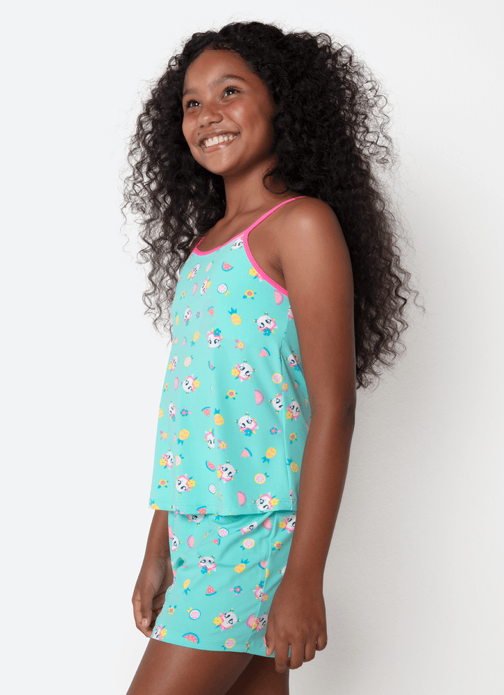 • Pijama Regata Teen Feminino Microfibra Unicórnio Aloha • Alça regulável • Tecido: Microfibra de poliamida • Toque geladinho • Estampa de unicórnio • Shorts com cós de elástico • Tecido Externo: 89% Poliamida 11% Elastano • Como lavar e conservar bem meu produto: Lavagem a mão, Não alvejar, Não secar em tambor, Secagem em varal por gotejamento a sombra Não passar ou utilizar vaporização, Não limpar a seco, Não limpar a úmido • Garantia por defeito: Deverá ser encaminhado dentro da embalagem original; Sem indícios de uso; acompanhado de nota fiscal e com todos os itens constantes na solicitação de troca.