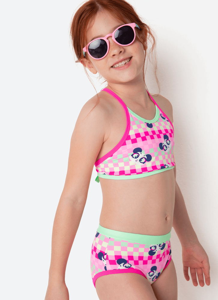Descrição: Biquíni kids. Possui estampa corrida, alças com cruzamento e ajuste de tamanho nas costas. Modelagem: com ajuste nas costas Estampa: estampa corrida - rotativa Tecido externo: 92% poliamida e 08% elastano. Tecido interno: 90% poliamida e 10% elastano. Ocasião de uso: Ideal para usar em clubes, academias, piscinas, praia. Diferencial do produto: tecido com toque macio; produto altamente resistente ao cloro; proteção solar UV (não substitui o uso de filtro solar); conforto. Como lavar e conservar bem meu produto: Lavagem à mão, temperatura máxima de 40c; não alvejar / não branquear; não secar em tambor; secagem em varal; não passar; não limpar a seco, não remover manchas com solventes; não guarde a peça úmida ; não use amaciantes ou produtos com alvejantes a base de cloro; evite contato com superfícies ásperas ; cloro e bronzeadores podem manchar o produto; após o uso, enxague bem a peça com agua fria; a contínua exposição à luz forte e água clorada pode deteriorar alguns tipos de tecidos e cores. Garantia por defeito: Deverá ser encaminhado dentro da embalagem original; Sem indícios de uso; acompanhado de nota fiscal e com todos os itens constantes na solicitação de troca.
