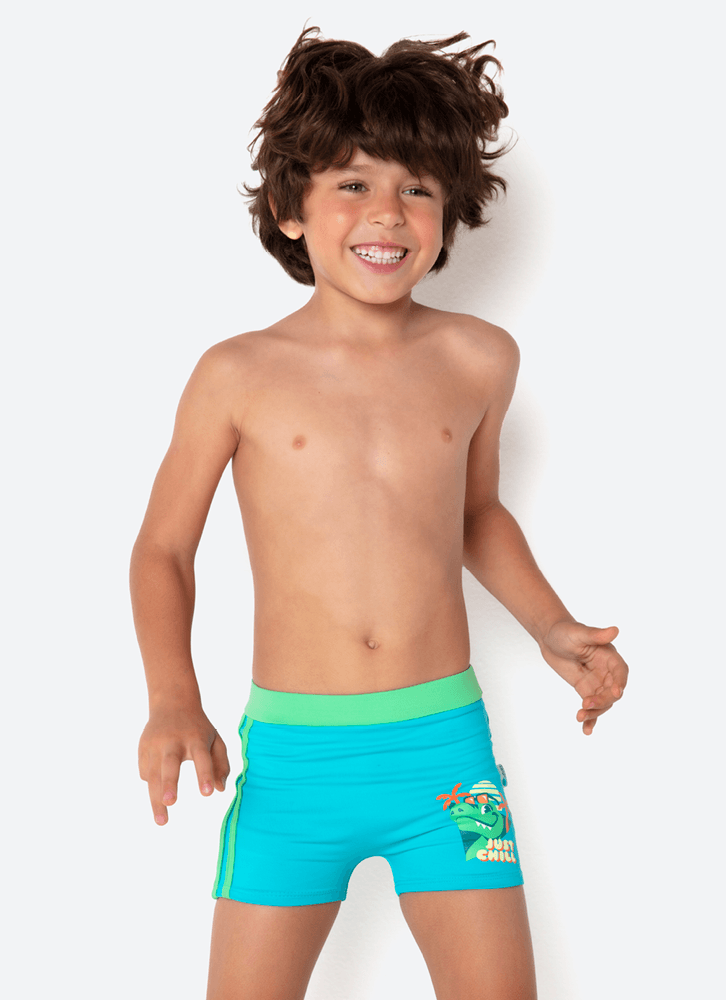 Descrição: sunga boxer kids Dino. Possui aplique lateral de viés contrastante, estampa localizada em silk e ajuste interno por cordão no cós. Nome do Produto: Sunga boxer kids Dino Miami. Modelagem: boxer Estampa sunga: estampa localizada em silk; Tecido externo: 92% poliamida e 08% elastano. Tecido interno: 90% poliamida e 10% elastano. Ocasião de uso: Ideal para usar em clubes, academias, piscinas, praia. Grade: 1 / 2 / 4 / 6 / 8 Diferencial do produto: tecido com toque macio, altamente resistente ao cloro; proteção solar UV (não substitui o uso de filtro solar); conforto. Como lavar e conservar bem meu produto: Lavagem à mão, temperatura máxima de 40c; não alvejar / não branquear; não secar em tambor; secagem em varal; não passar; não limpar a seco, não remover manchas com solventes; não guarde a peça úmida ; não use amaciantes ou produtos com alvejantes a base de cloro; evite contato com superfícies ásperas ; cloro e bronzeadores podem manchar o produto; após o uso, enxague bem a peça com agua fria; a contínua exposição à luz forte e água clorada pode deteriorar alguns tipos de tecidos e cores. Garantia por defeito: Deverá ser encaminhado dentro da embalagem original; Sem indícios de uso; acompanhado de nota fiscal e com todos os itens constantes na solicitação de troca.