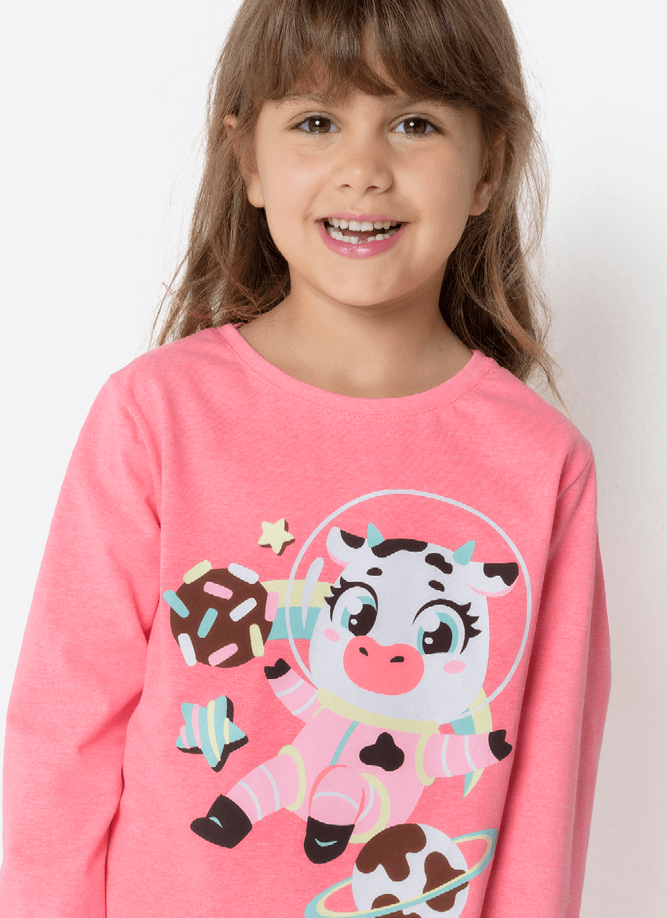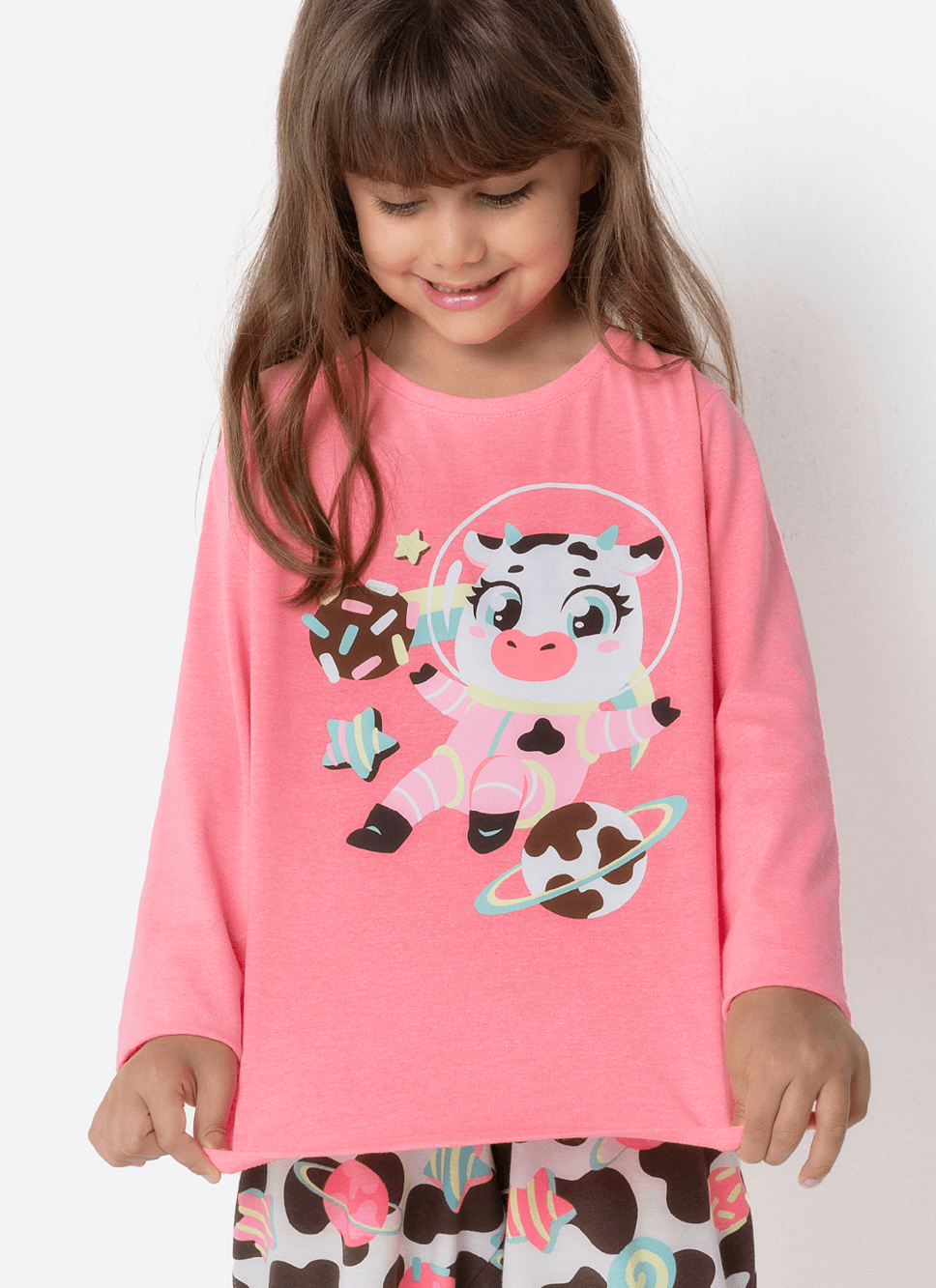 Pijama Manga Longa Algodão Menina Vaca Chocolate