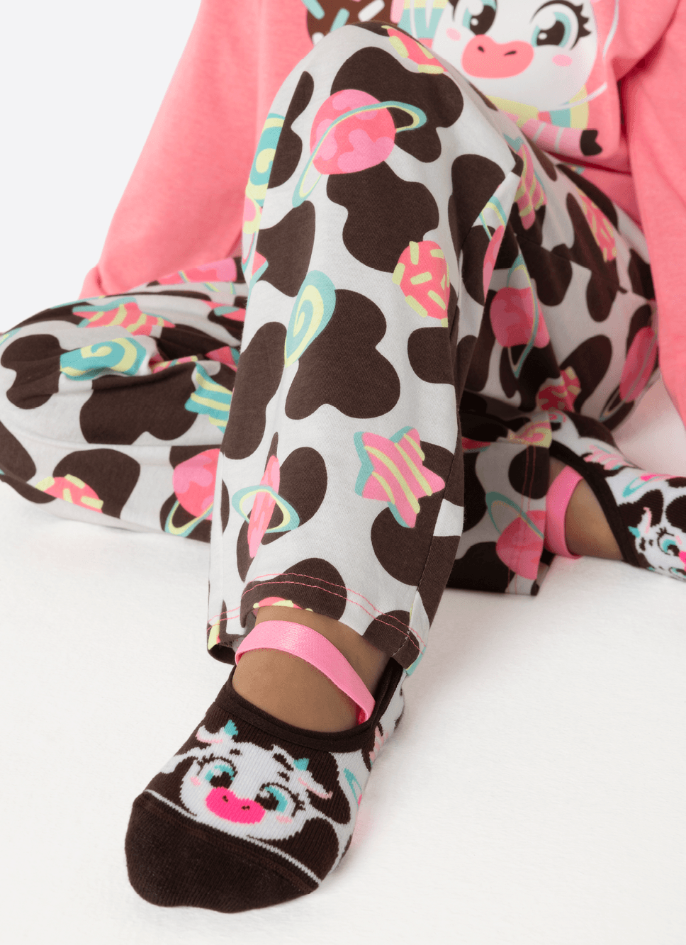Pijama meia malha com estampa divertida e exclusiva de vaca Puket.