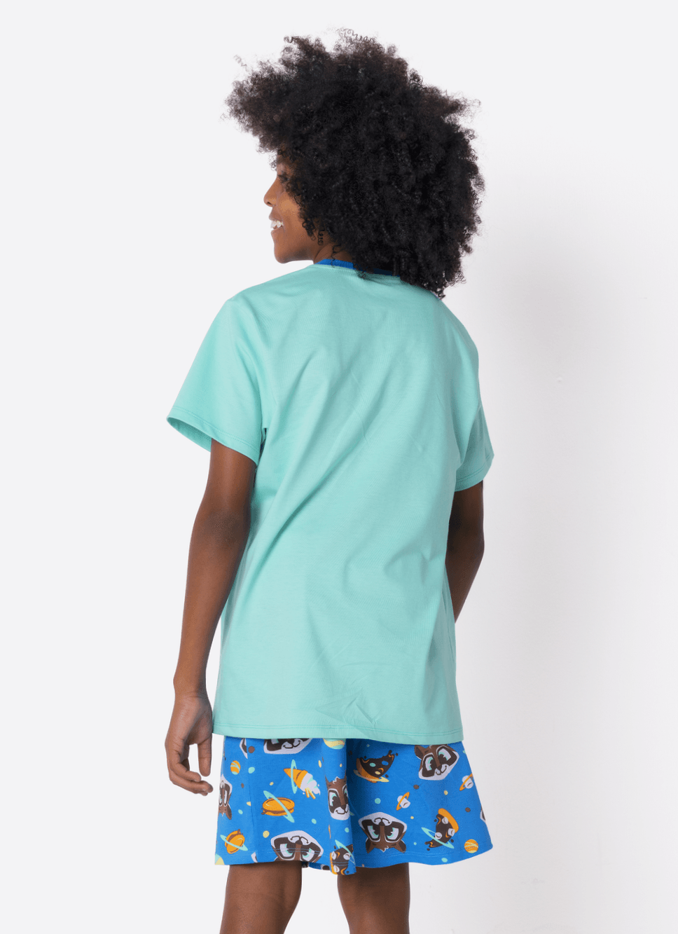 Pijama Manga Curta Algodão Menino Teen Guaxinim Chocolate