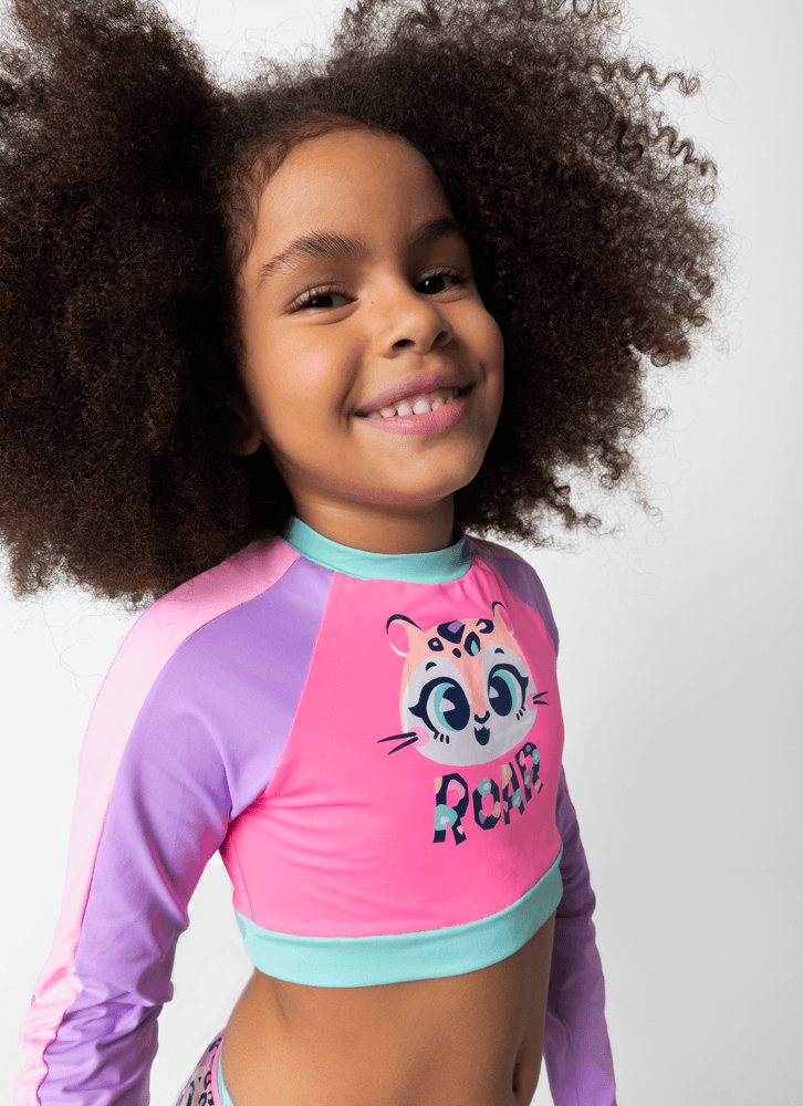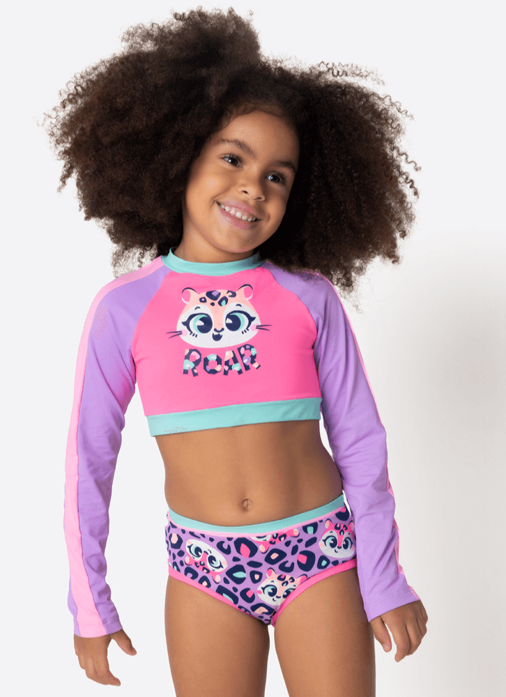 Conjunto Cropped e Calcinha Com Proteção Solar Menina Onça