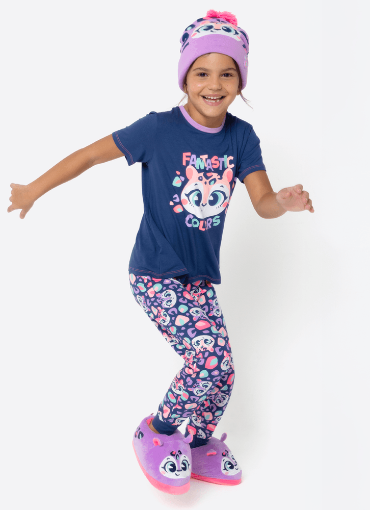 Pijama de viscolycra com estampa exclusiva e divertida Onça Fantástica a Puket.