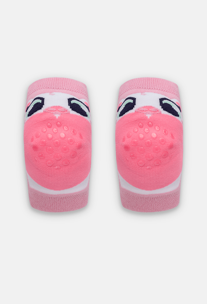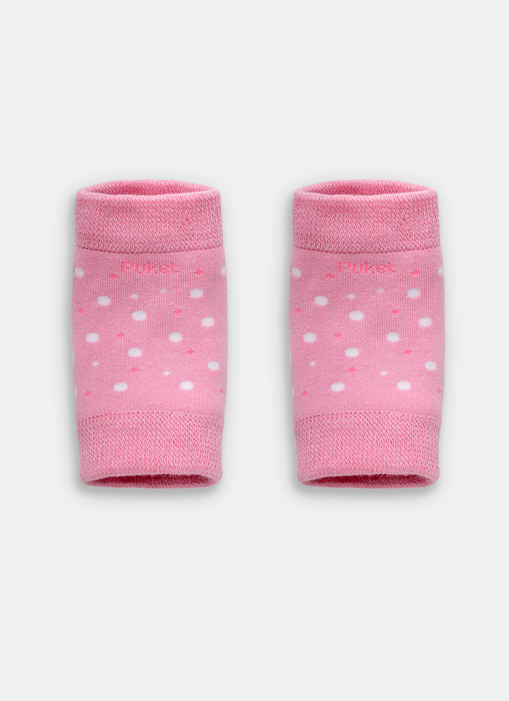 A Joelheira com desenho de ursinha é produzida com algodão macio em sua maior parte, e poliamida no desenho.