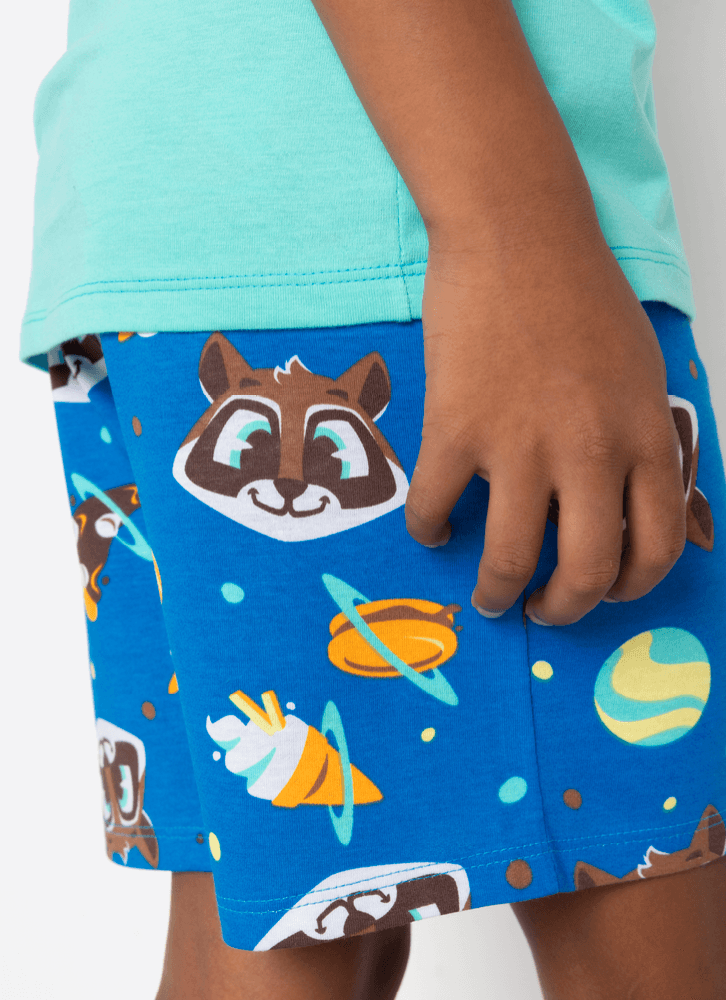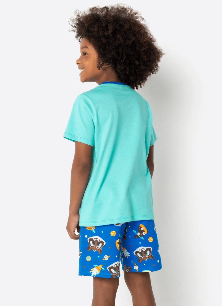 Pijama Manga Curta Algodão Menino Guaxinim Chocolate