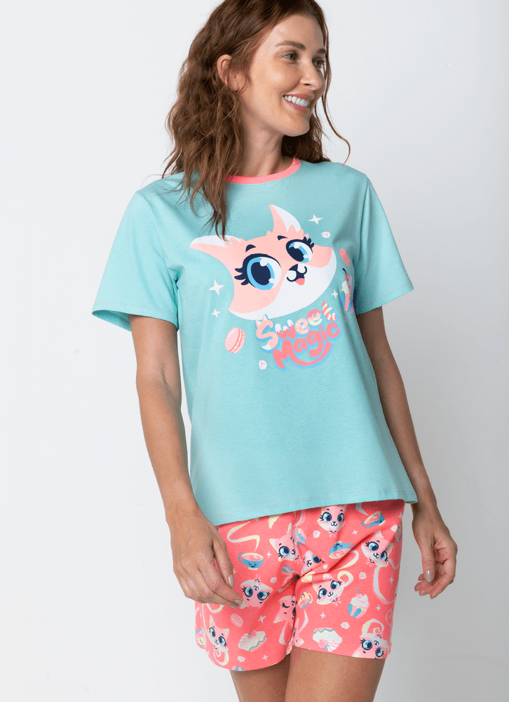 Pijama Manga Curta Algodão Feminino Raposa Confeiteira