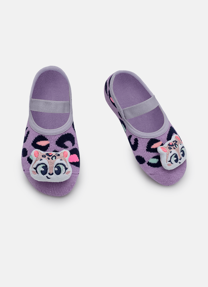 'Meia com modelagem sapatilha atoalhada com desenho divertido tema Onça Fantástica.