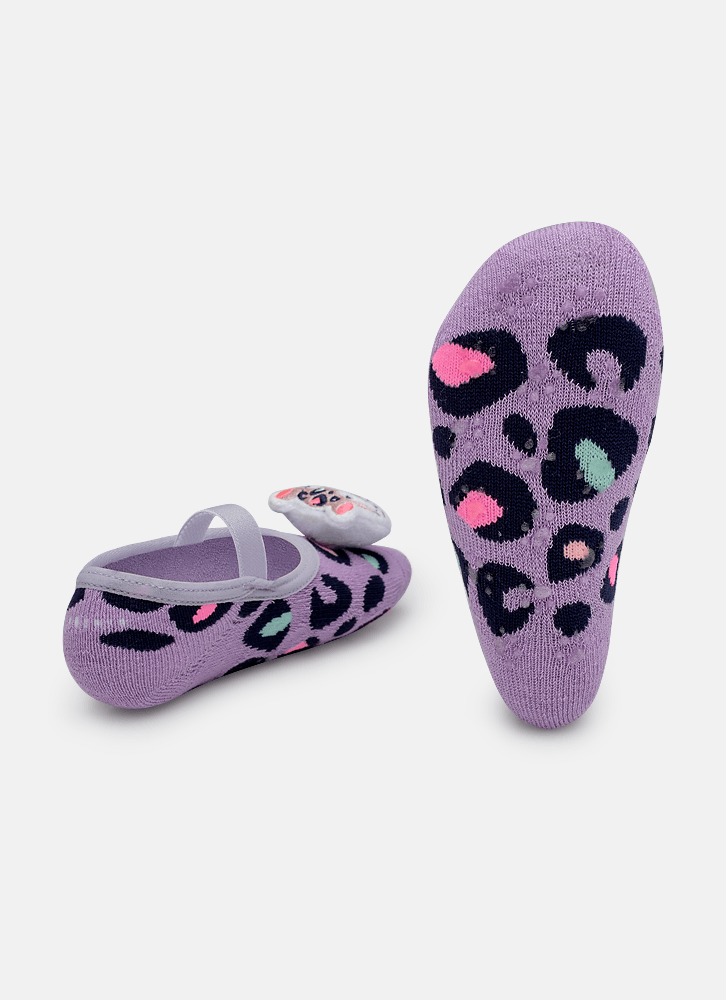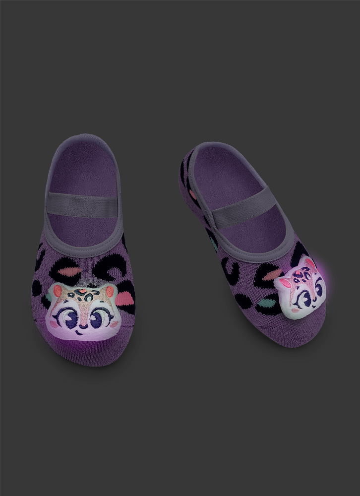 Meia Sapatilha Antiderrapante Bebê Menina Aplique com LED Onça