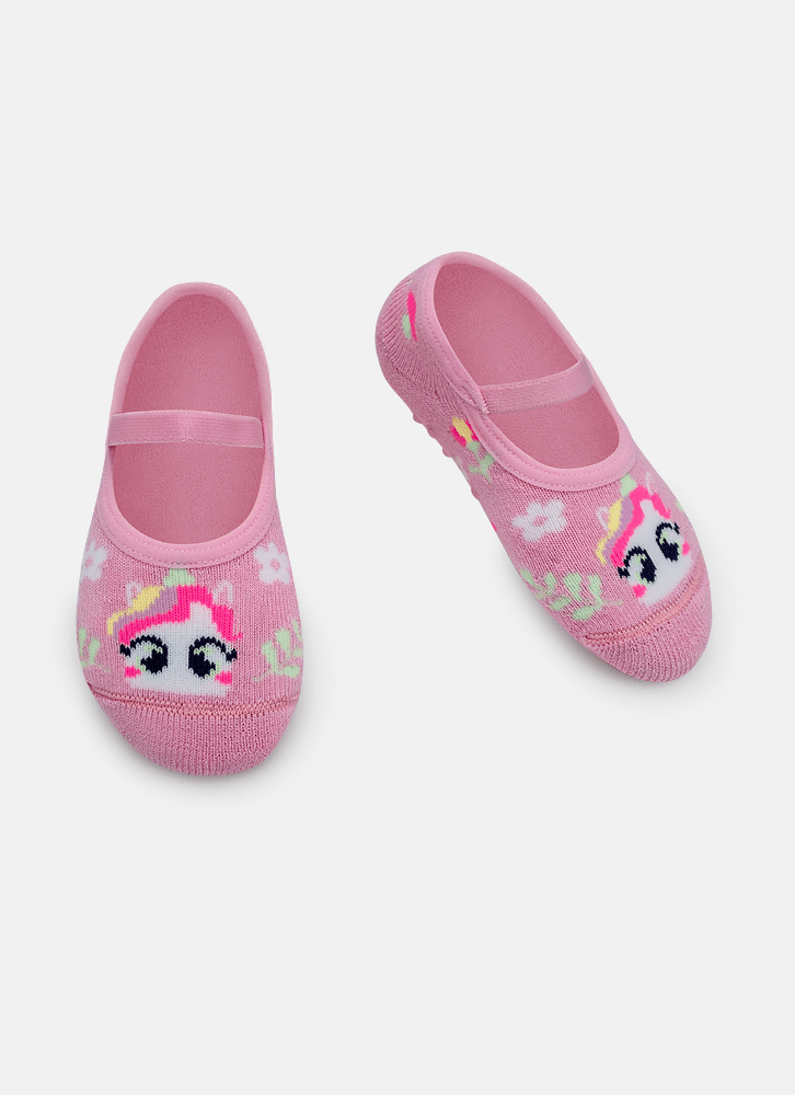 'Meia com modelagem de sapatilha no tema Uni Floresta Encantada.