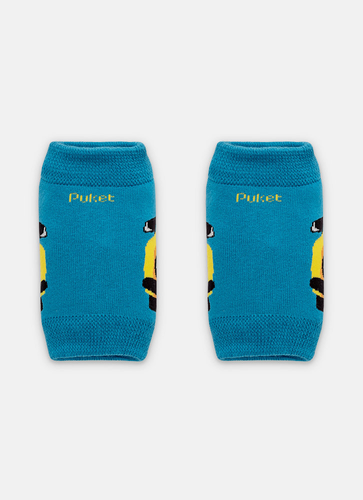 A Joelheira com desenho de carro é produzida com algodão macio em sua maior parte, e poliamida no desenho.