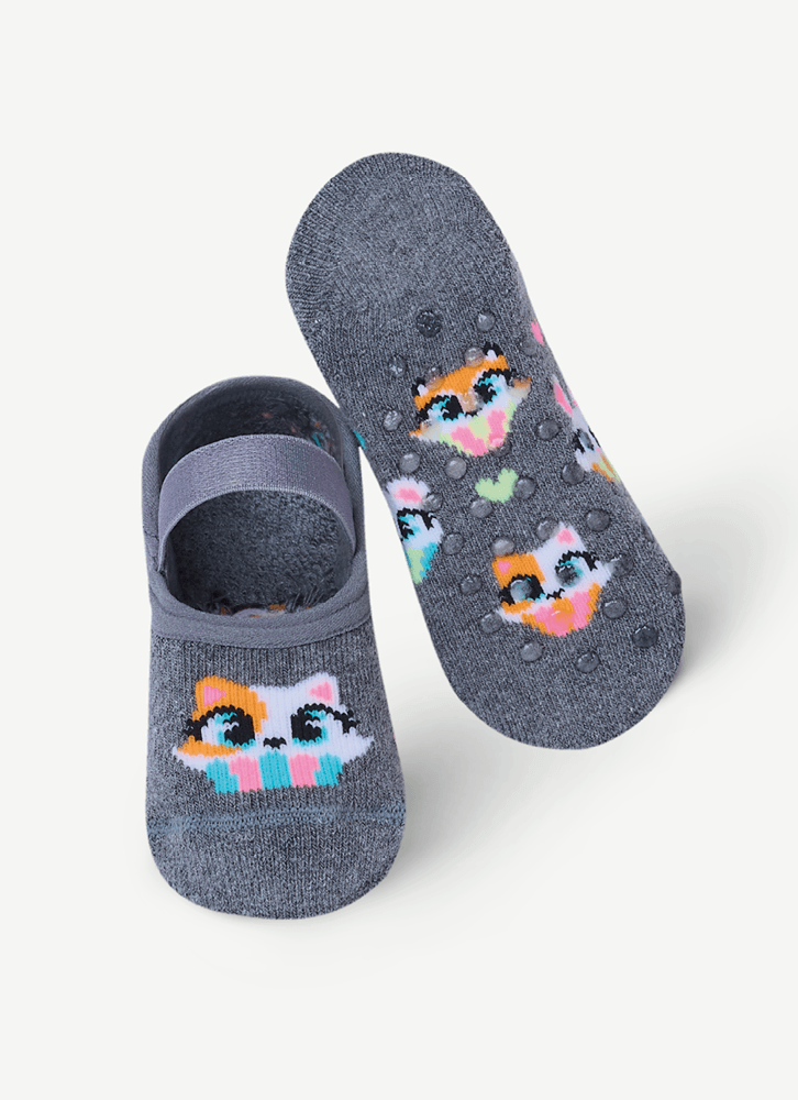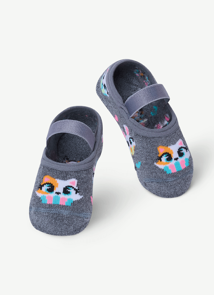'Meia com modelagem de sapatilha no tema cupcake multibichos.