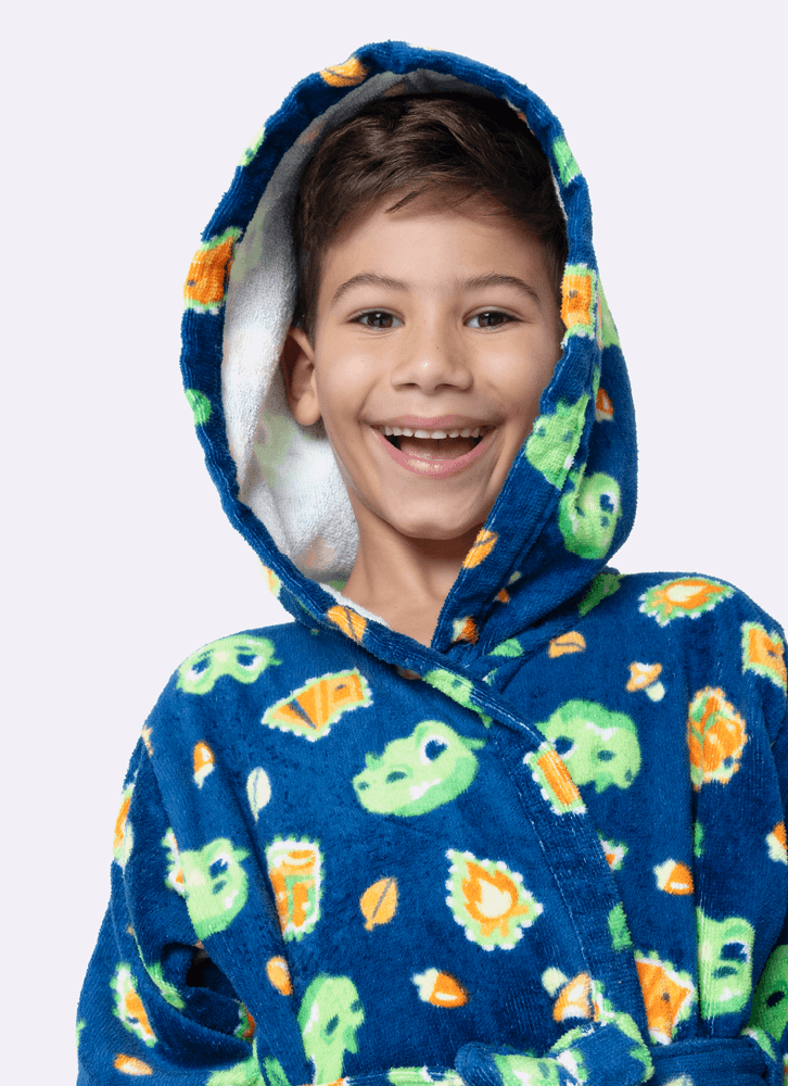 Deixe o pós-praia ou pós-piscina ainda mais divertido e confortável com o Roupão de Praia Menino Puket! Feito em 100% algodão, com estampa animada de dragões, capuz, bolsos e modelagem super prática, ele garante proteção, estilo e liberdade de movimentos para os meninos aproveitarem o verão com alegria.