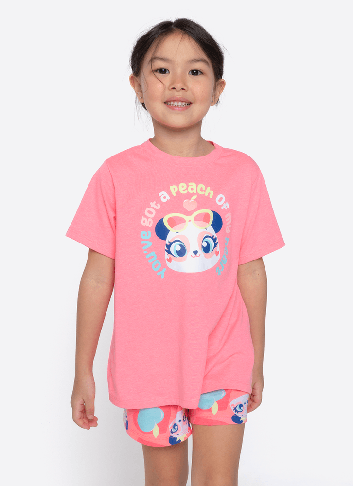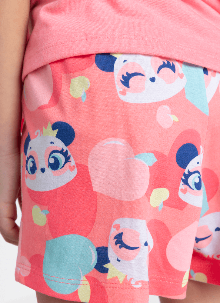 Pijama Manga Curta Algodão Menina Panda Romântico