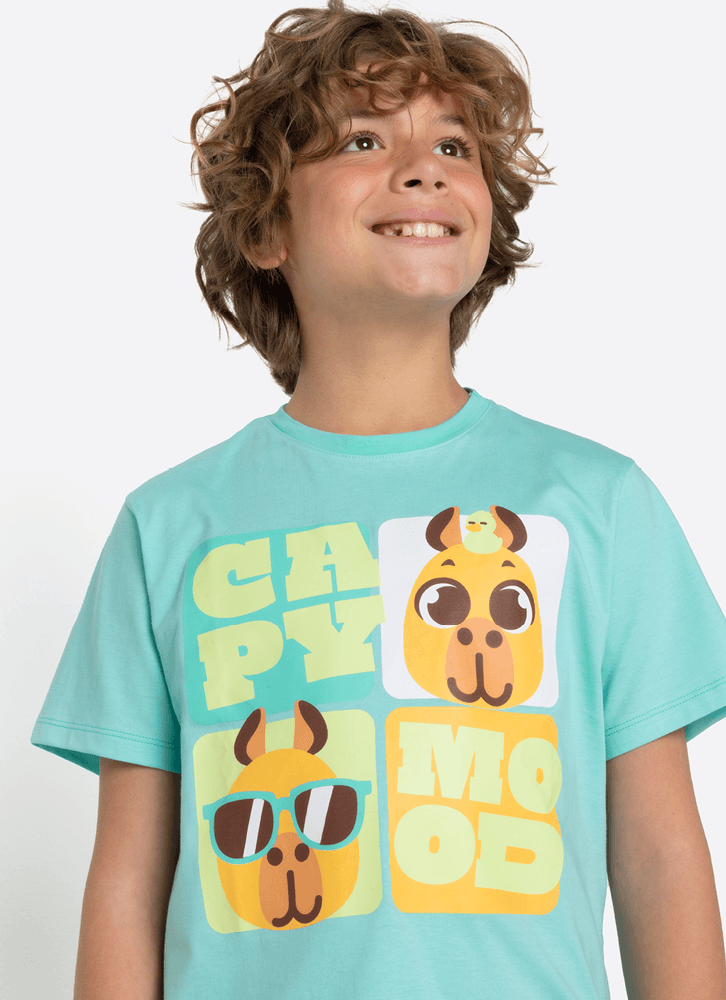 Pijama manga curta com estampa divertida e exclusiva Capivara para Puket