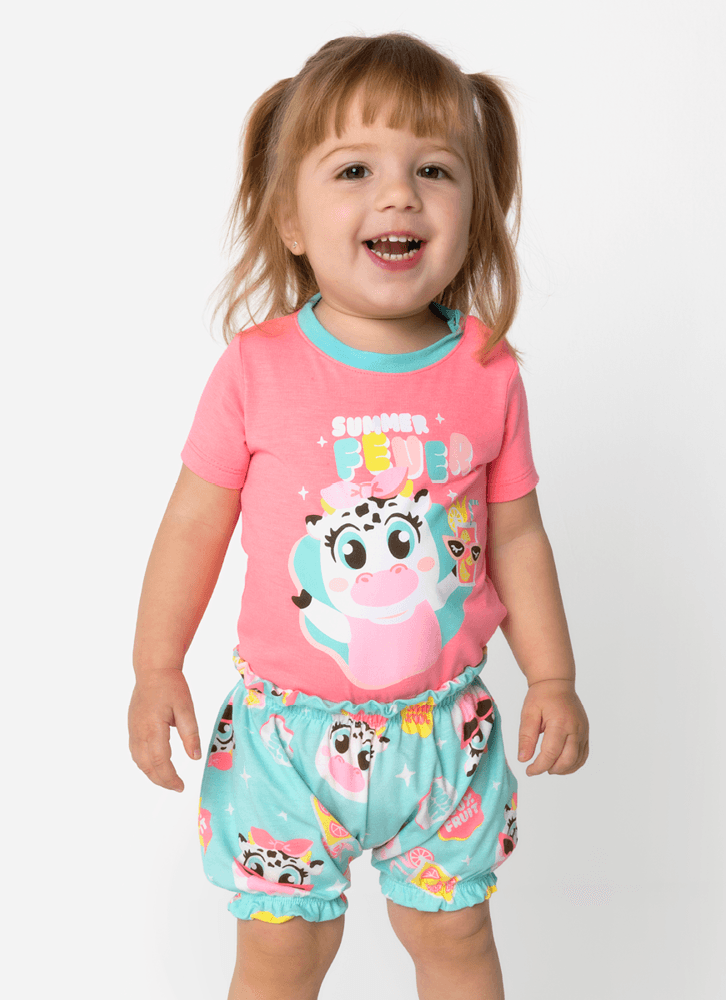 Pijama Manga Curta Viscolycra Bebê Menina Vaca Summer